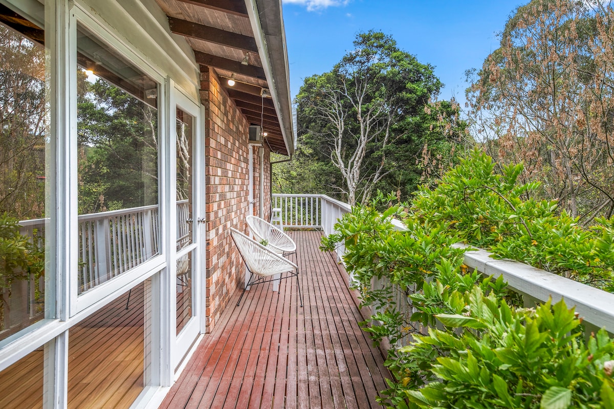 This bed sit looks out two large windows/doors, onto beautiful bush and a creek bordered by huge manna gums. The main house's back garden surrounds the unit which is full of light and beauty. There is a queen bed, walk-in wardrobe, a bathroom and a small kitchen area with a microwave, jug, toaster, sandwich maker and bar fridge and a small couch with a large TV. There is also a small desk for work. It is cleaned under AirB&B procedures ; a beautiful space, with a private entrance.