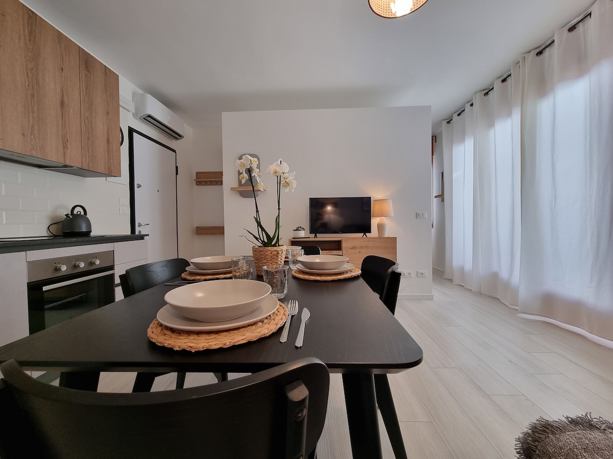 Davina Suite c'est un refuge chaleureux au cœur de Trévise, où les familles et les voyageurs se sentent immédiatement chez eux. Une grande terrasse donnant sur la verdure invite à la détente, tandis que le parking gratuit et la gare à quelques pas facilitent les excursions à Venise et Vérone. Espaces lumineux, cuisine entièrement équipée, Wi-Fi rapide et climatisation assurent un confort optimal. Quartier calme près de la rivière, animaux bienvenus.