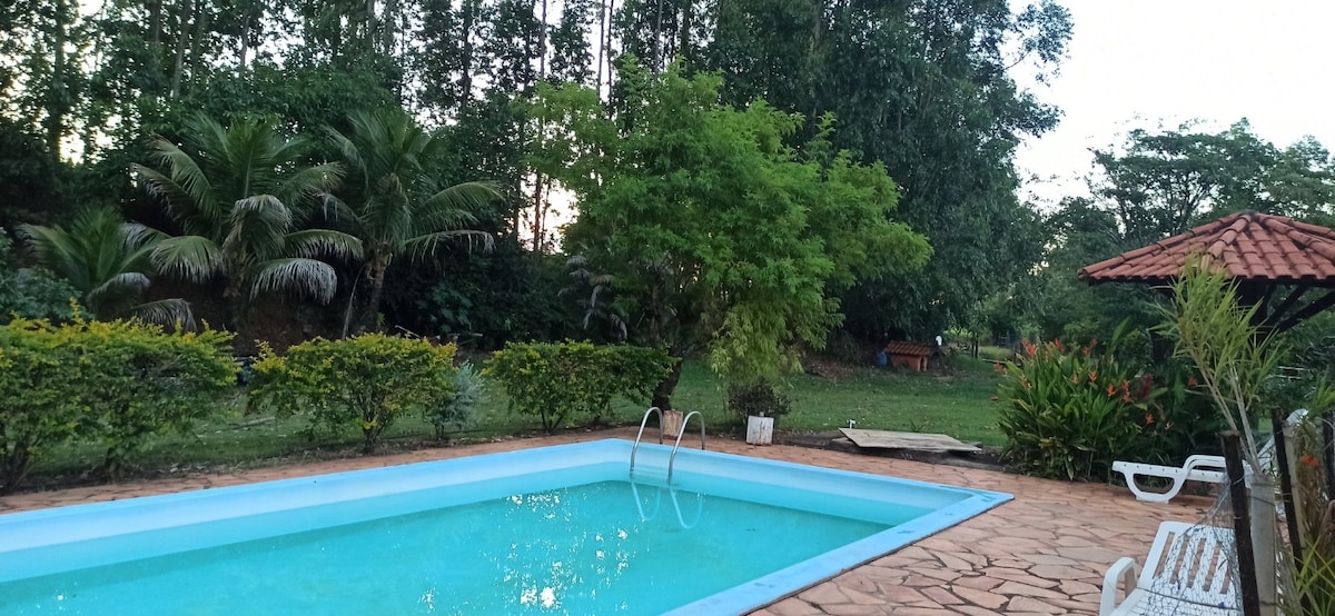 Location à partir de 6 invités jusqu'à 34 h. Détendez-vous en famille et entre amis dans ce logement au milieu de la nature et de la tranquillité. Trois cascades , lac, slackline, court de tennis de plage, piscine chauffée avec eau de mine, barbecue portable, zone de feu, promenade écologique à travers l'immense zone de préservation de l'environnement qui nous entoure, les animaux et beaucoup de contact avec les beautés naturelles de la ferme.