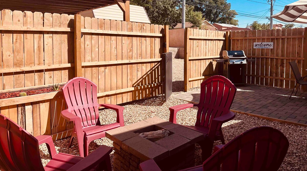 Retrouvez-vous à proximité de tout ce qu'il y a à voir et à faire dans cette charmante maison d'inspiration néo-mexicaine dans le quartier historique de Mountain Rd. Parfait pour les couples et les familles. À distance de marche des magasins et des restaurants, de la vieille ville et du quartier animé de Sawmill. À quelques minutes de l'aéroport, du BioPark, du centre-ville, de l'UNM, juste à côté de la Route 66! Cette maison personnalisée est dotée de carreaux uniques et d'une ambiance chaleureuse du sud-ouest. Mobilier luxueux, cuisine complète et oasis confortable dans la cour arrière fermée! Nouveau parc piétonnier avec PICKLE BALL, avec des raquettes à utiliser!