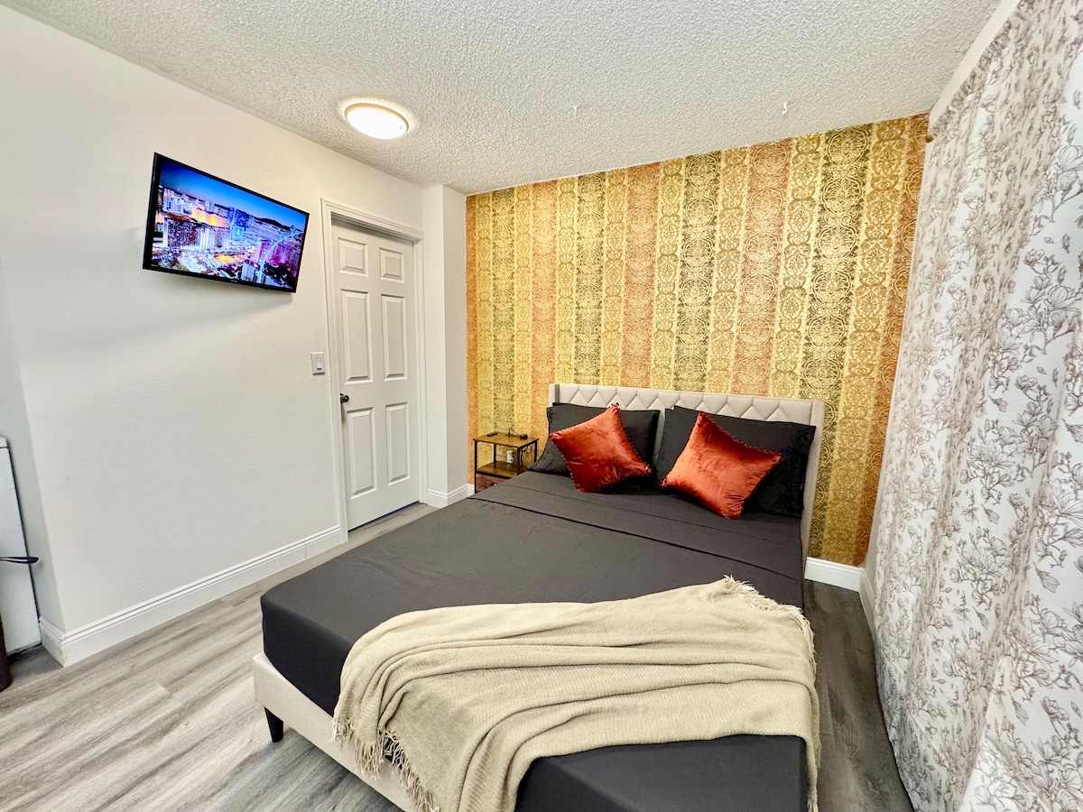 Détendez-vous dans ce charmant petit studio avec entrée privée et arrivée AUTONOME. 1 parking GRATUIT sur place et WIFI inclus avec chaque séjour. Situé à seulement 5 minutes de l'aéroport international Harry Reid, à 15 minutes du célèbre LAS VEGAS STRIP et du STADE ALLEGIANT. VEUILLEZ LIRE LE RÈGLEMENT INTÉRIEUR AVANT DE RÉSERVER ♡