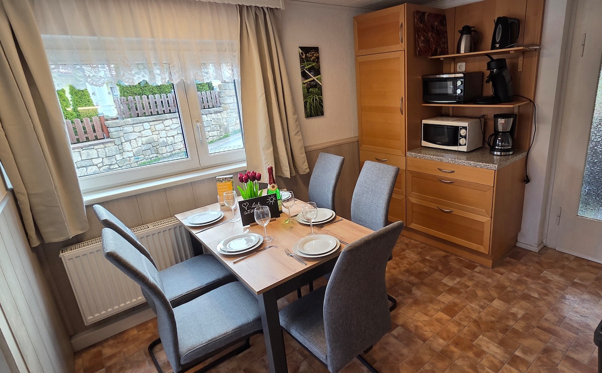 L'appartement de vacances Amalie s'étend sur le premier étage et le grenier d'une maison à colombages rénovée avec amour. La maison dispose d'un jardin de plus de 1 500 mètres carrés directement au bord du Lachsbach, qui offre beaucoup d'espace pour jouer et se détendre. Le spacieux appartement de vacances Amalie convient aux grandes familles et aux petits groupes jusqu'à 6 personnes. Les draps et les serviettes sont inclus dans le prix : Arriver et se sentir bien !
