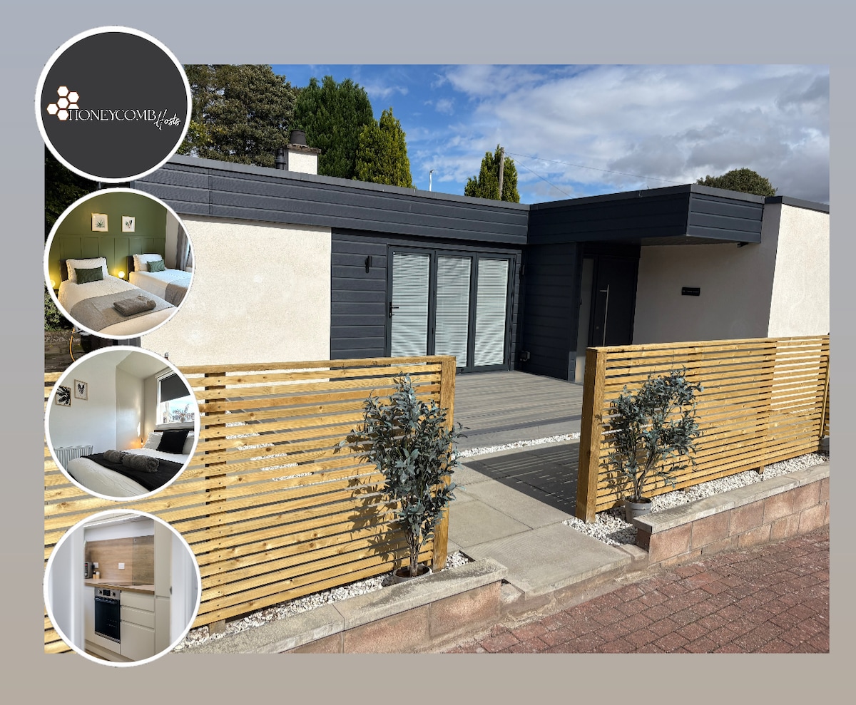Magnifique chalet de 3 chambres et 2 salles de bain - tous de plain-pied, dans un endroit isolé, situé dans un domaine privé et entretenu à Angus, à 10 minutes en voiture du centre de Dundee. Parfaitement placé pour visiter St Andrews, Angus, Édimbourg, Perthshire et Fife. Jardin/cour fermée. Confortable jusqu'au poêle à bois, profitez de promenades autour du parc et des bois du domaine victorien. Terrains de tennis disponibles. Les chiens sont les bienvenus - Les conditions s'appliquent.