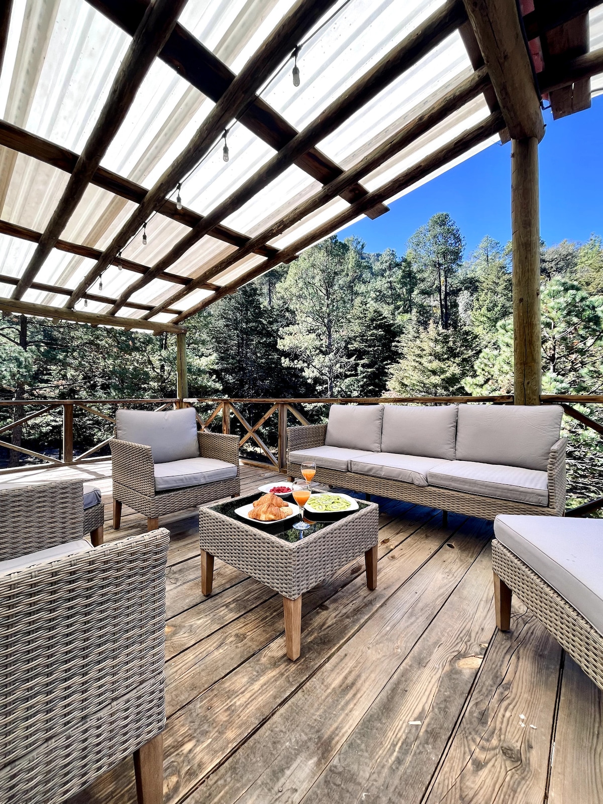 Nous sommes à 30min de la ville de Durango. Distingués par leur végétation et leur climat, c'est l'attraction principale de la région, venez passer des moments inoubliables avec vos proches. Nous avons tous les services tels que l'eau chaude, les chauffages à bois, la cheminée, le poêle, la vaisselle, etc. Les activités que vous pouvez faire pendant votre séjour sont des hiking où vous pouvez trouver une rivière très proche. À l'intérieur de la cabane il y a des jeux de société, des jeux pour enfants, un terrain de basket, une cheminée, un hamacasetc