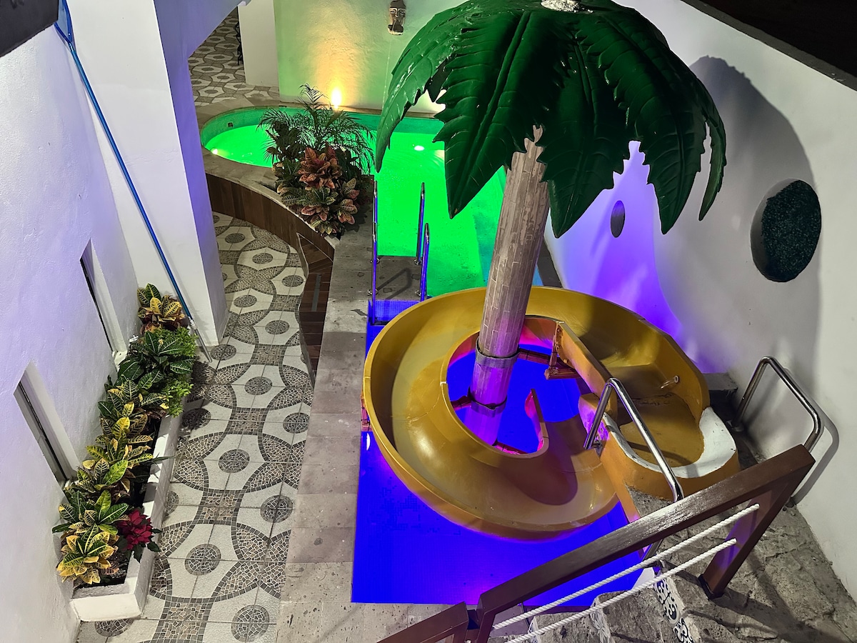 Disfruta de una vista espectacular todo el tiempo, desde la alberca infinity en la azotea, el balcon o los cuartos. Cuando salgas disfruta de salida directa al Malecon/Playa, tienda de conveniencia justo afuera. Nuevo acuario de Mazatlan, estadio de beisbol y muchos restaurantes a menos de 5 min. Caminando. Si decides quedarte puedes disfrutar del balcon, tv en cuarto principal, asadores, alberca etc.