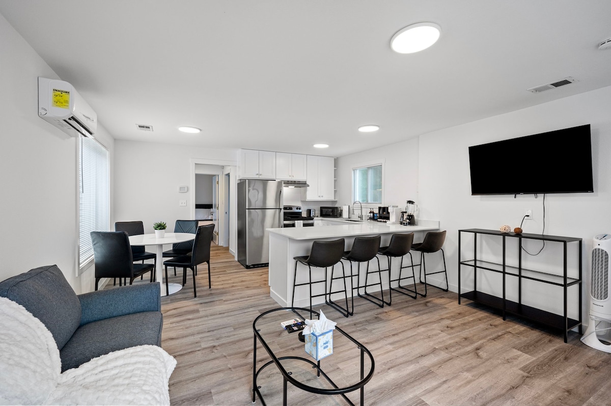 Bienvenue dans mon confortable appartement au rez-de-chaussée dans un immeuble de 1908 restauré avec amour. Ce logement rénové avec soin allie le charme historique au confort moderne, vous offrant le meilleur des deux mondes. Que vous soyez ici pour le travail ou pour le plaisir, vous apprécierez la climatisation puissante, un tout nouveau lit Nectar et une cuisine entièrement équipée. Niché dans le quartier animé de Georgetown à Seattle, vous serez à quelques pas de cafés, de bars et de parcs uniques tout en profitant de la paix, du confort et d'un stationnement facile juste devant.