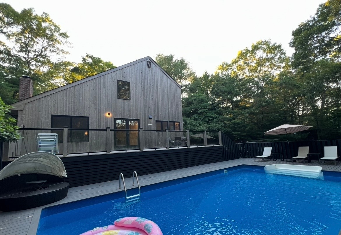 Louez une belle et spacieuse propriété de 4 chambres/3 salles de bain à East Hampton avec une piscine chauffée dans le jardin. Cette maison de trois niveaux avec grande cuisine, climatisation centrale, barbecue dans la cour arrière et garage est l'endroit idéal pour recevoir des invités ou pour se détendre et s'évader à East Hampton.
