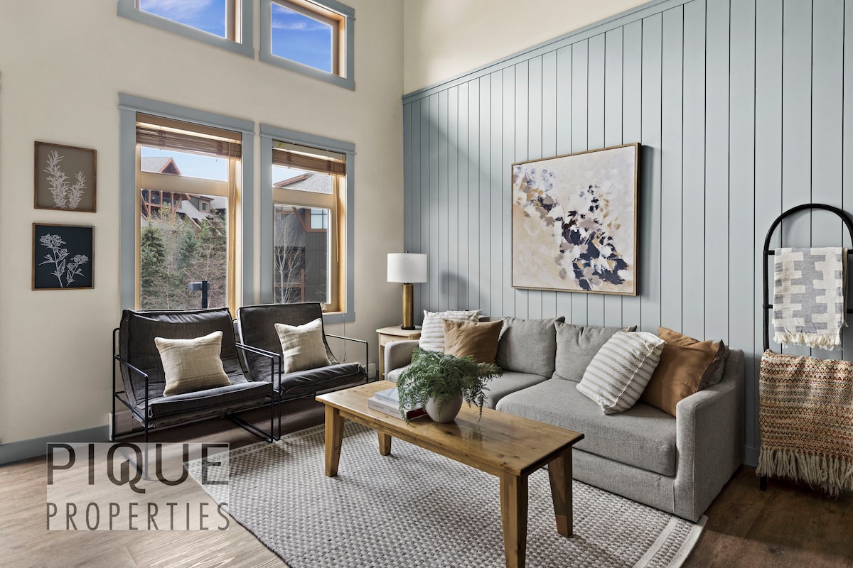 Toby 133 est un loft alpin contemporain entièrement rénové. Situé au troisième étage du complexe de condos Toby Creek, les plafonds de 20 pieds et les fenêtres célestes remplissent l'espace de lumière naturelle. En été, les sons impétueux de Toby Creek peuvent être entendus à travers les fenêtres ouvertes. L'utilisation de bois de récupération et d'art de montagne contemporain vibrant donne à notre maison une sensation éclectique et organique. Un loft ouvert mais confortable et privé surplombe le salon et la cuisine spacieux.
