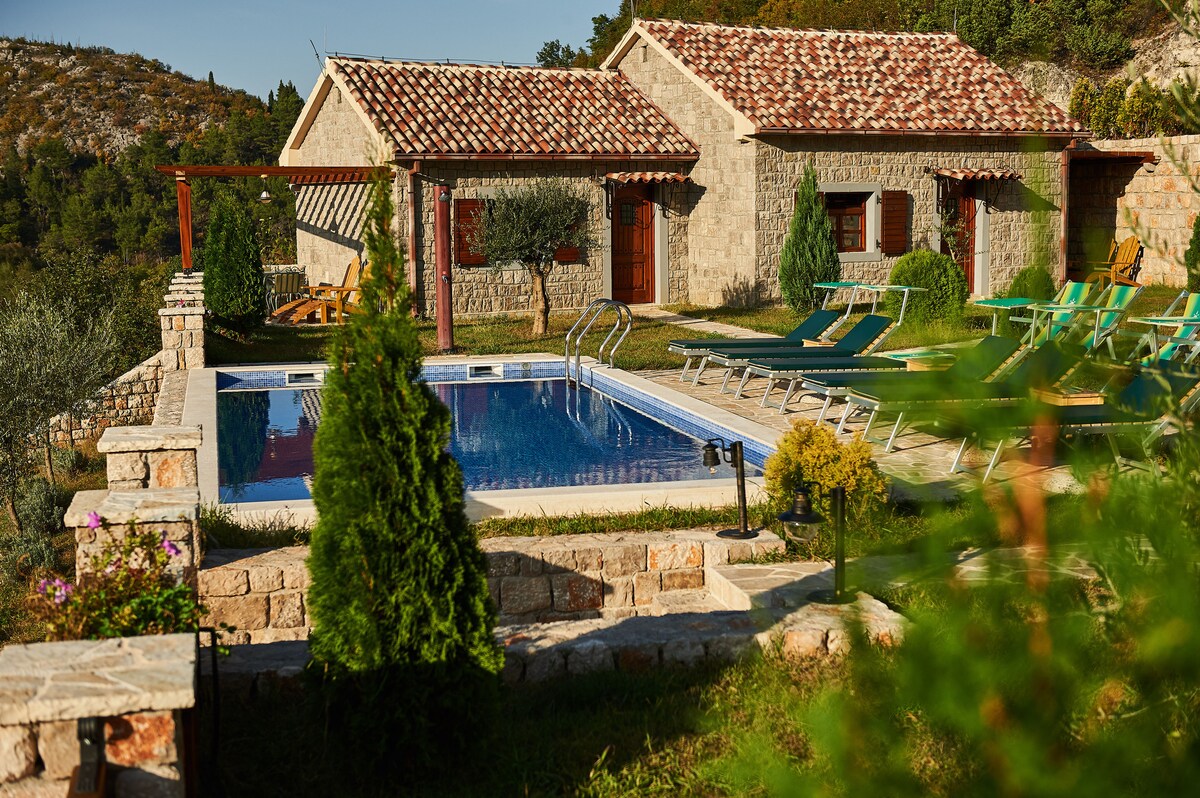 Cette villa en pierre magnifiquement décorée bénéficie d'un emplacement qui coche pratiquement toutes les cases : vue sur la mer, montagnes, forêts, jardins et à quelques kilomètres de la ville médiévale magique de Dubrovnik. La villa est située dans un terrain spacieux entouré d'une nature pure dans une belle partie de la campagne de Cavtat, à cinq minutes en voiture d'un joli rivage de galets et d'eaux calmes et cristallines. Absolument privée et connectée avec la nature, elle offre aux voyageurs un cadre paisible et calme pour profiter d'une pause relaxante.