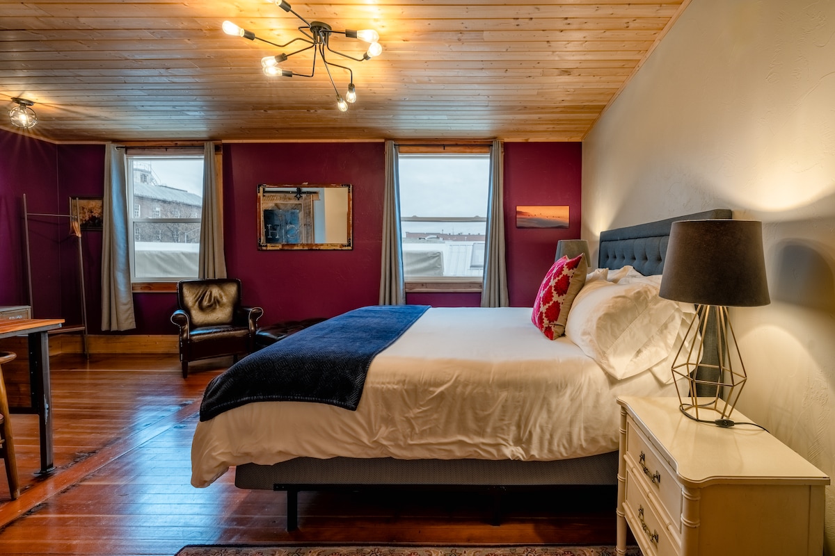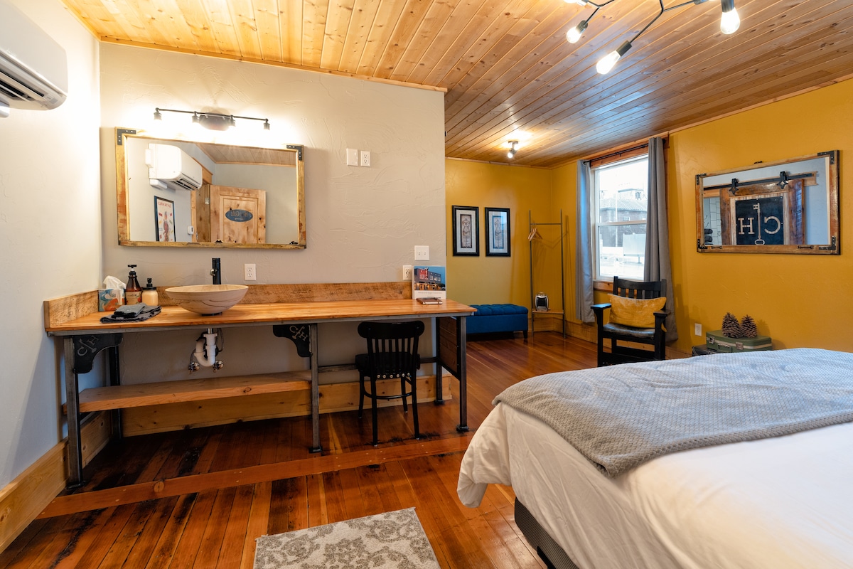 Évadez-vous vers l'aventure dans le studio confortable du Bridge Street Inn dans la ville animée de Baker City, OR! Niché près de la rivière Powder, à quelques pas du centre-ville. Refuge adapté aux animaux de compagnie avec lit queen moelleux, kitchenette, téléviseur 55 po, Wi-Fi rapide, climatisation, stationnement gratuit, foyer confortable avec guimauves de bienvenue à l'arrivée, buanderie et petit déjeuner chaud complet. Promenez-vous dans des musées captivants et des joyaux historiques; plongez dans le golf, la tradition de l'Oregon Trail ou des randonnées palpitantes. Impeccable, confortable et super pratique : votre base épique vous attend!