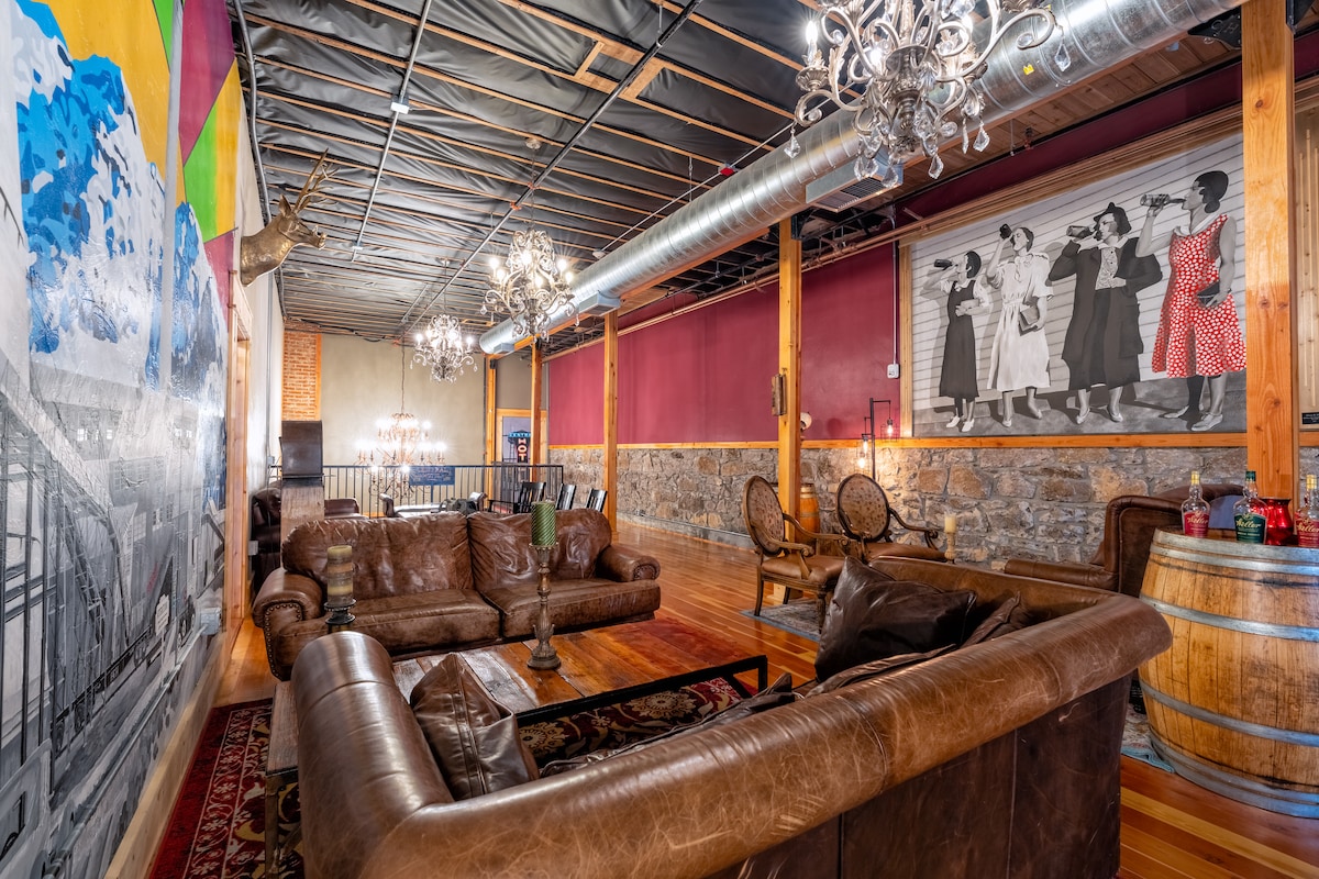 Le Palooza Basecamp Hotel est situé dans un bâtiment centenaire récemment rénové. Les chambres arborent des œuvres d'art locales mettant en valeur la beauté de la région tout en répondant confortablement à vos besoins avec des lits réglables, des téléviseurs de 40 pouces, des douches et des miroirs rétroéclairés. Un large couloir commun relie toutes les chambres avec une sensation de montagne confortable. Les chambres ont accès à des équipements supplémentaires. La chambre 02 dispose de 2 lits jumeaux XL au deuxième niveau ; vous entrerez dans le couloir commun et aurez un accès à votre chambre par une entrée codée.