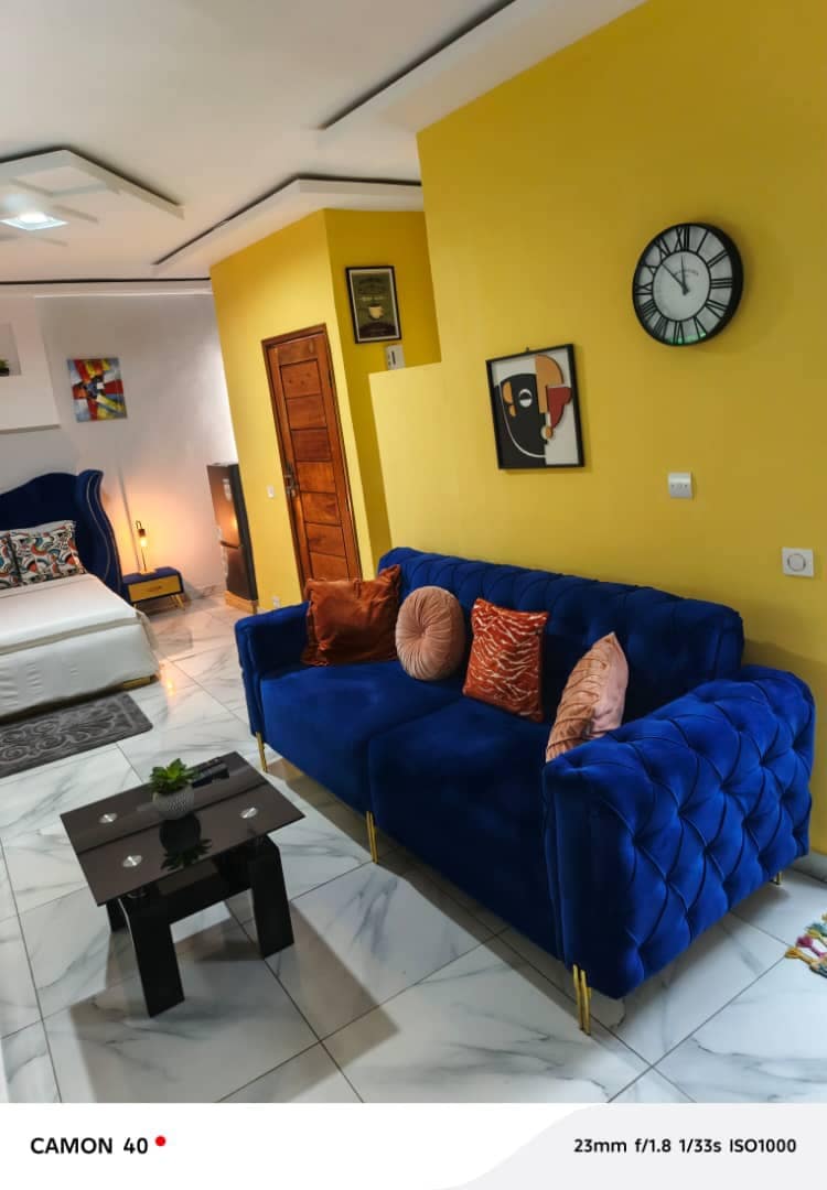 Profitez du meilleur spot d’Abidjan, à Cocody Angré 8è Tranche ! Ici tout a été pensé pour que vous vous sentiez vraiment bien : une grande terrasse aménagée privée pour vos apéros au coucher du soleil, un espace extérieur fermé avec son propre bar pour des soirées à l’ambiance tropicale et une déco intérieure unique qui mêle modernité et vibes africaines. Nous proposons aussi des services supplémentaires: • Véhicule/Massage/Pressing/Restauration/Décoration à thème/Acheminement vers aéroport