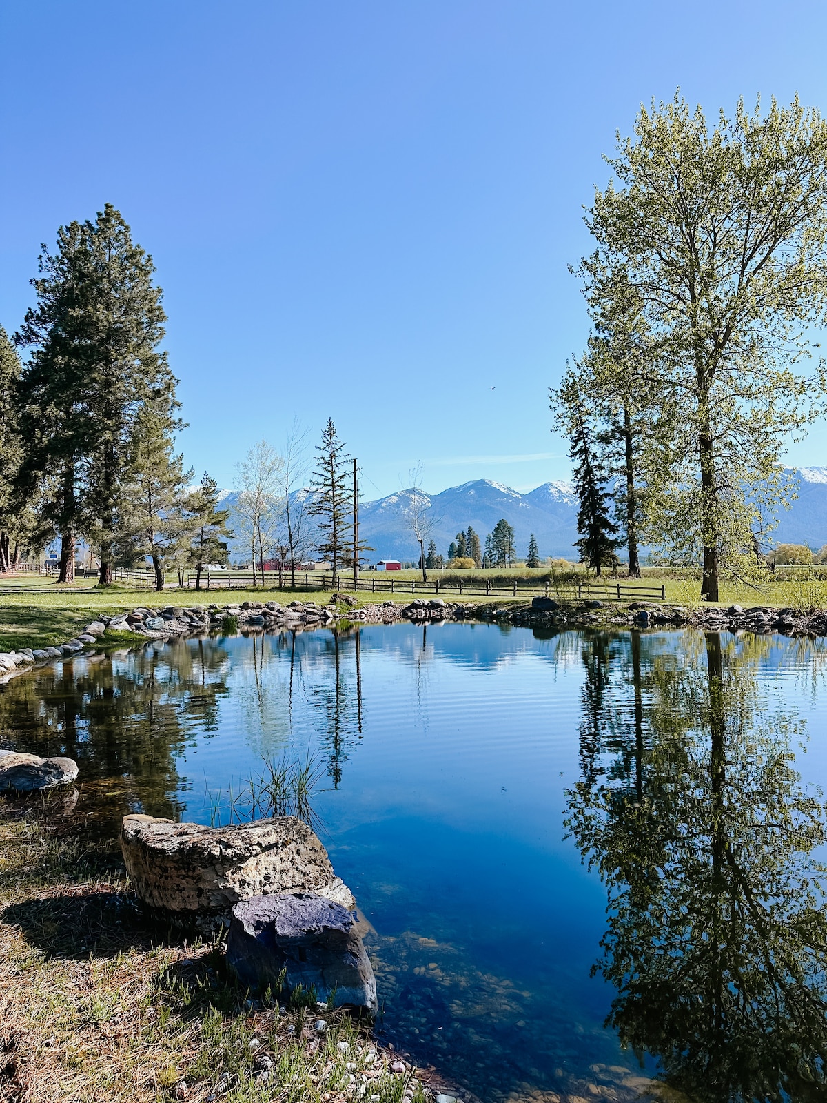 Il s'agit d'un chalet nouvellement construit selon des normes de luxe et situé sur notre ferme en bas d'une route privée, à l'extrémité nord du lac Flathead. La vue est spectaculaire car vous pouvez profiter d'une vue à 360 degrés sur la vallée, le lac Flathead, le parc Glacier, les montagnes Swan, la montagne Blacktail et les grands cieux et étoiles du Montana. Le seul terrain entre notre ferme et le lac est une réserve d'oiseaux aquatiques. Beaucoup de faune sur la propriété et c'est un endroit merveilleux pour profiter de la vallée de Flathead.
