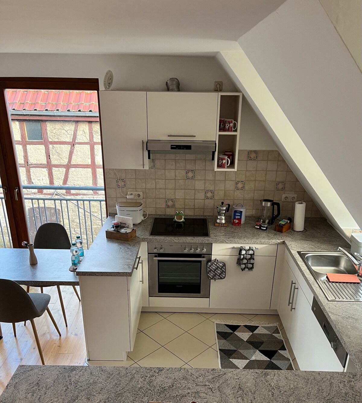L'appartement se trouve au rez-de-chaussée et est agréablement frais en été. Il a été entièrement rénové et conçu avec amour et beaucoup d'habileté artisanale par nos soins. L'atelier de bois est dans la maison. (uniquement comme passe-temps... il ne faut pas s'attendre à du bruit)😉 Le jardin est une petite oasis et il y a mon atelier de fleuriste, que j'exploite commercialement. Les pièces de l'appartement sont lumineuses, spacieuses et conviviales. Des stores occultants sont installés. La cuisine est bien équipée avec tout le nécessaire. En tant qu'hôte, j'habite sur place et je suis toujours disponible pour répondre à vos questions. Des livres et des jeux sont disponibles.