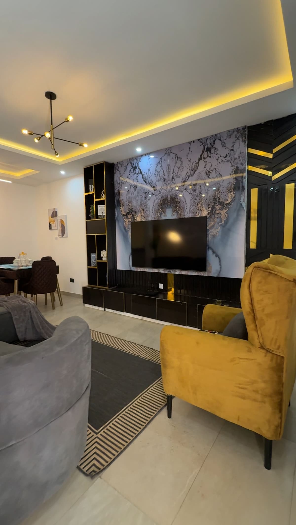 All Day uninterrupted power supply fully serviced round the clock house keeping fitted and functional kitchen smart tv free WiFi free and secure parking armed security guard government reserved area only 2 mins from all amenities including shopping cinema bar and lounges.