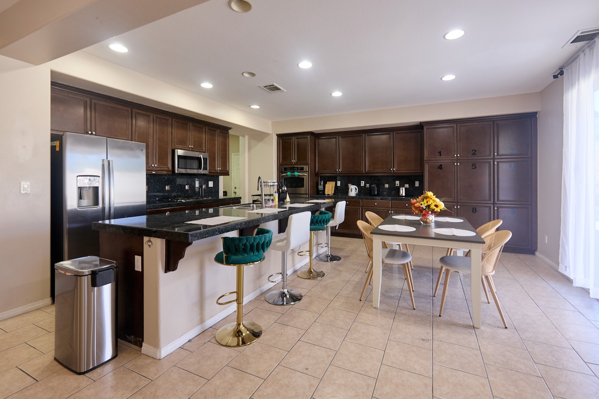 Retraite spacieuse de 3 chambres avec piscine. Cette location magnifiquement aménagée dispose de 3 chambres, 2 salles de bains rénovées et d'une oasis dans l'arrière-cour avec une piscine privée, un spa et un jacuzzi. La cuisine extérieure comprend un gril à gaz et une plaque chauffante Blackstone. Détendez-vous dans l'espace de vie couvert avec des ventilateurs de plafond, un système audio et une télévision 70". À l'intérieur, profitez de sièges de théâtre moelleux, d'une télévision 75"avec son surround et d'un accès transparent à l'arrière-cour. À seulement 10 minutes de Palmdale, c'est l'escapade rêvée !
