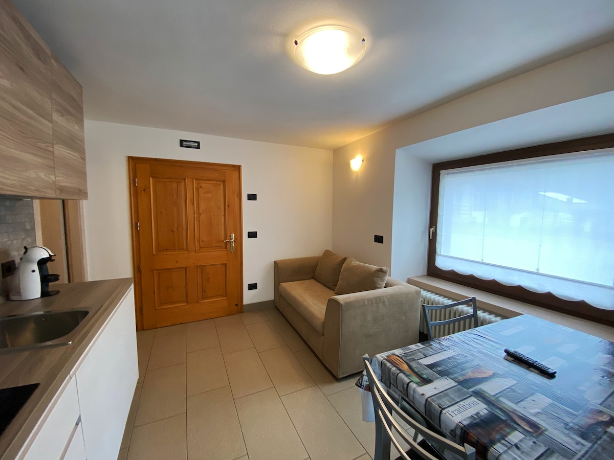 Un appartement intime de style montagnard confortable et traditionnel dans le foyer de Livigno, une chambre confortable et calme, 1 appartement avec salle de bain privée dans la via Pontiglia. Proche du centre de la ville, des arrêts de bus, de la pharmacie et à distance de marche de toutes les commodités telles que restaurants, boutiques, etc., vue imprenable sur les montagnes. Dispose d'une cuisine privée, d'une connexion Wi-Fi rapide et gratuite. Animaux acceptés (chiens de moins de 25 livres). Services publics inclus : place de parking protégée, particulièrement utile pendant les mois les plus froids.