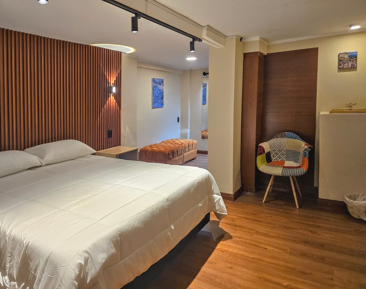 Bienvenue à Hatun Wasi ! Profitez d'un séjour unique dans cet appartement moderne situé à quelques pas de la gare routière, idéal pour les voyageurs qui arrivent ou partent de la ville et qui souhaitent un maximum de confort et d'accès. De là, vous pourrez facilement marcher jusqu'à la vieille ville, explorer la place historique Murillo, visiter des musées et profiter des meilleurs cafés et restaurants. De plus, vous serez à proximité des stations importantes du téléphérique, vous connectant rapidement à toute la ville.