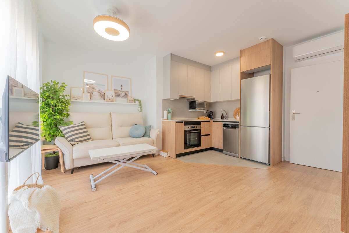 Licencia Turística VT-467380-A Situé dans le centre, dans le quartier prisé d'Alicante et surplombant la mer. * Air conditionné. * Wifi * Smart TV 40 "avec Netflix. * Lave-linge, fer à repasser, sèche-cheveux, micro-ondes, grille-pain, cafetière. * Près de RENFE, TRAM et station de bus. * 15 minutes à pied de la plage. Note: Un matelas pour le canapé sera fourni, sur réservation préalable d'une troisième personne.