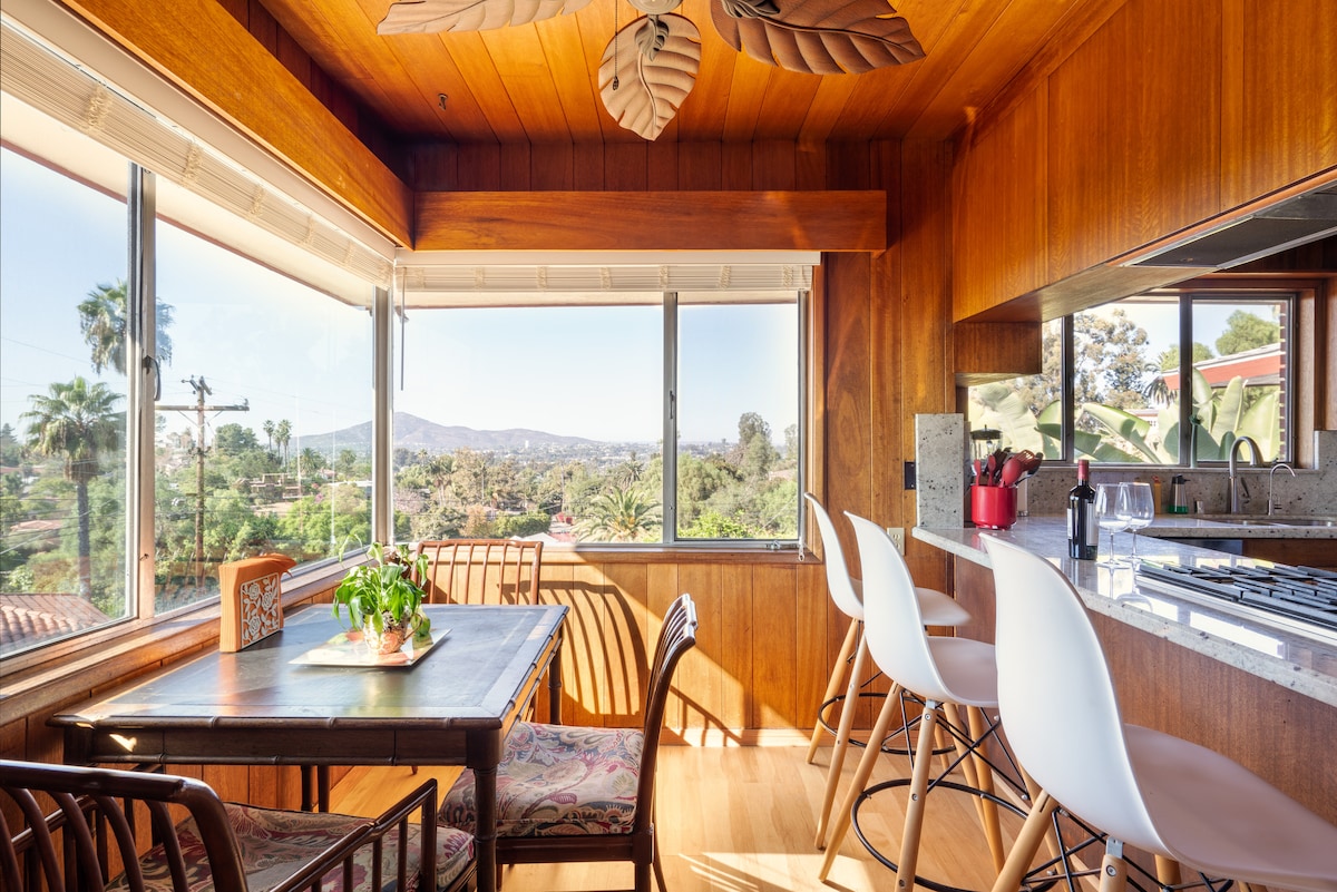 ~ ALLÉE TOUTE NEUVE ~Perché sur des collines de granit, notre bungalow confortable et élégant est parfait pour une escapade au calme à San Diego. Préparez votre café du matin et promenez-vous jusqu'à la piscine pour laisser la vue imprenable sur la ville alimenter vos aventures quotidiennes. Organisez un barbecue dans la cour arrière spacieuse et privée après votre journée à la plage.Installez-vous confortablement dans le fauteuil inclinable et profitez du grand écran de la Smart TV 4K.(avec câble). 420 Friendly ! « Profitez de la piscine à flanc de colline ; il vous suffit de vous coordonner avec Johnny pour votre propre baignade privée. »