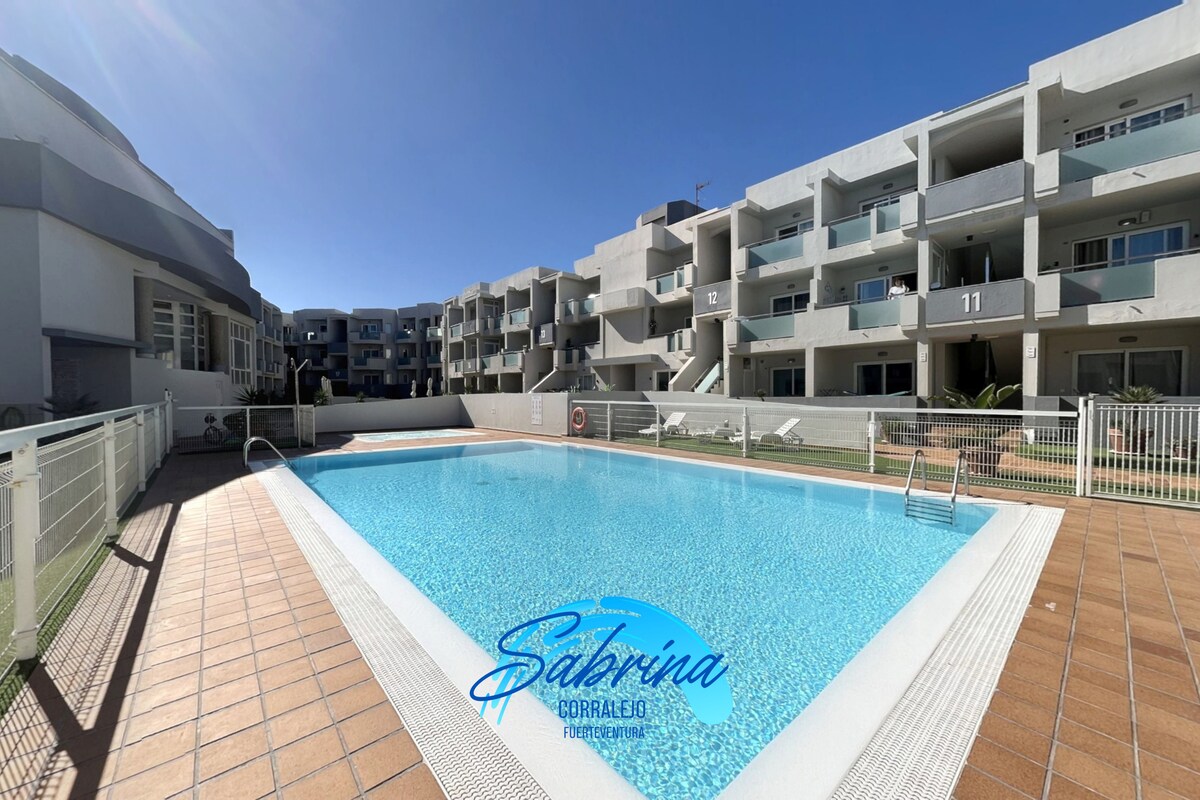 Nouvel appartement dans le centre de Corralejo (Fuerteventura), sur la promenade maritime au pied de la plage 2-4 personnes. , piscine commune, 1 chambre, salle de bain complète, cuisine salon, 2 terrasses dont une sur la mer, wifiAIRE CLIMATISATION ÉTÉ Nouvel appartement dans le centre de Corralejo (Fuerteventura) front row 2-4 personnes. Fully equiped, community swimming pool, 1 bedroom, bathroom, kitchen and lounge, 2 terraces one front viewing the sea and the other to the swimming pool, wifi. VV-35-2-0001569