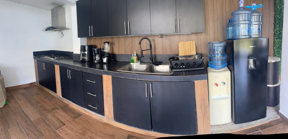 Maison de montagne moderne à Altos del Maria, au Panama, une communauté fermée à seulement 1 heure et 30 minutes de la ville de Panama. La communauté dispose de rivières, de sentiers d'observation des oiseaux et se trouve à seulement 25 minutes des plages du Pacifique. C'est l'endroit parfait pour faire une pause et se détendre. La maison dispose d'un décor moderne, d'une piscine à débordement, de 2 chambres avec climatisation, d'une connexion Wi-Fi, d'un lave-vaisselle, d'un lave-linge et d'un sèche-linge et d'une vue imprenable sur les montagnes. Le départ tardif gratuit est accordé pour les locations de départ le dimanche.