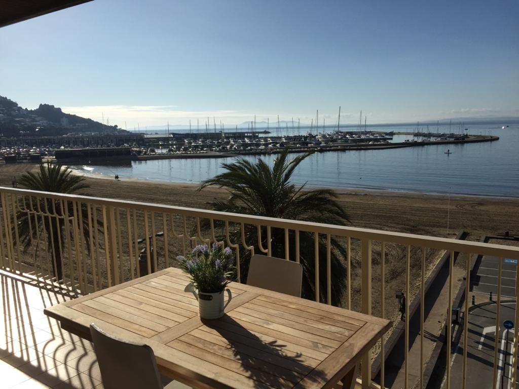 Bel appartement moderne et lumineux, il est situé en front de mer et vous offre depuis la terrasse une vue spectaculaire sur la baie de Rosas et sa promenade. Il est complètement équipé (cuisine et ustensiles, chauffage / clim, fer à repasser, machine à laver, draps et serviettes, Wifi ...), et possède une place de parking privée.
