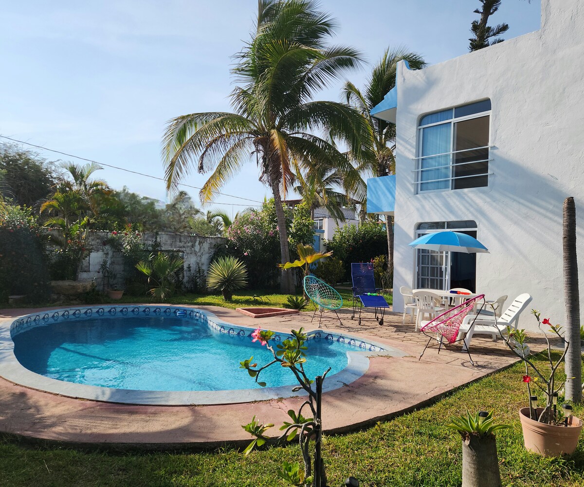 C'est une maison super confortable, au bord de la lagune, dans une colonie rustique entourée de pêcheurs, très sympathiques, originaires de la région, et nous sommes à 2 pâtés de maisons de la Force aérienne, à laquelle la Colonie doit son nom. La plage est située à 2 pâtés de maisons en face de la maison, nous ne sommes divisés que par l'avenue principale qui relie à la fois Pie de la Cuesta et la Barra de Coyuca qui se trouve à 14 km. Comme elle est sur la lagune, les levers de soleil sont spectaculaires.