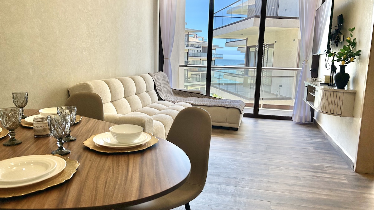 🏖️ Détendez-vous avec toute la famille dans ce logement où le calme se respire. ✨ Profitez de vacances incroyables dans ce nouvel appartement qui a tout. 🌊 Vous vous réveillerez au son des vagues de la mer et contemplerez le beau coucher de soleil dans le confort de votre logement. 🌅💙