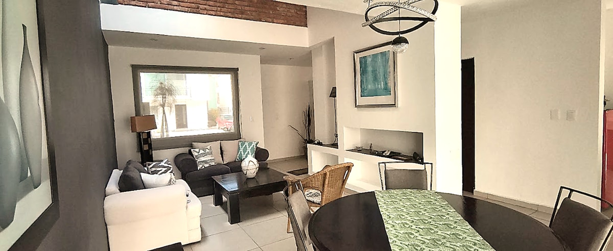 Appartement au rez-de-chaussée sans escalier et à une distance minimale du parking. (animaux acceptés et nous facturons) Entourez-vous d'un environnement sûr et propre lors de votre voyage en famille ou d'affaires. Découvrez la ville de Querétaro tout en profitant du confort et de la sécurité pour passer un bon moment Veuillez noter que Querétaro connaît une grave sécheresse, il peut donc y avoir des pénuries d'eau ou des coupures de courant. Ce qui n'est pas en notre pouvoir Nous vous recommandons et vous supplions de prendre grand soin de l'eau
