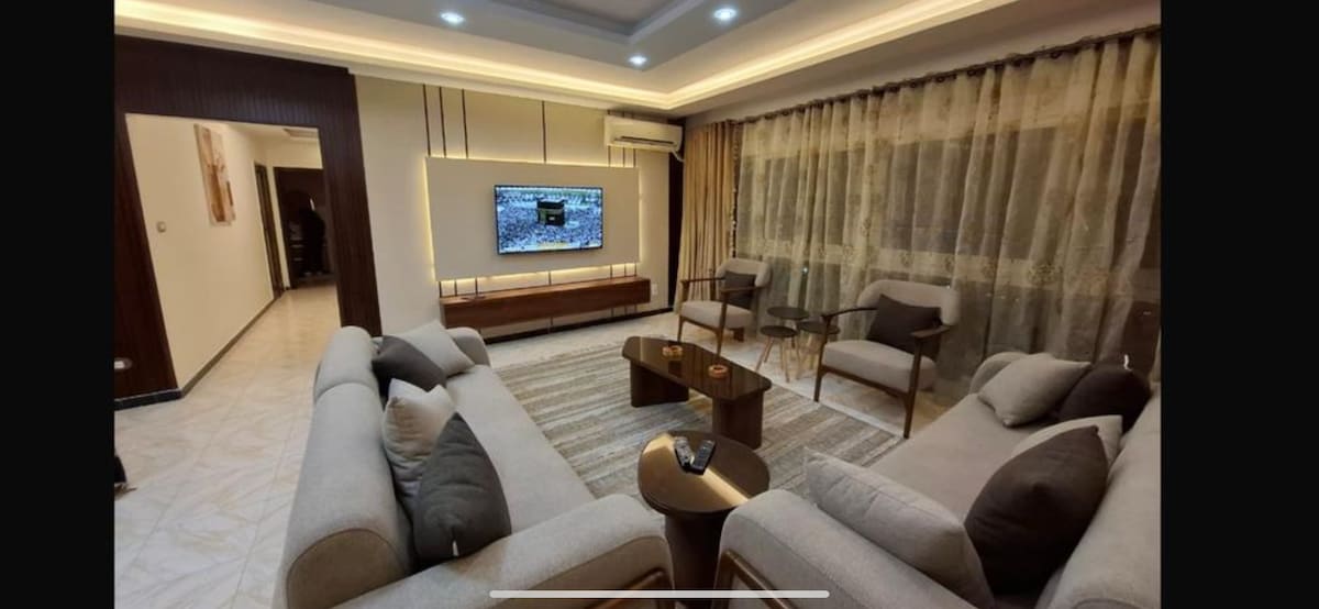 Luxury Nile-view apartment in Agha Khan Towers – Cairo, fully renovated in 2023 with a modern design. Two bedrooms and a panoramic living room with a 5-meter glass window overlooking the Nile. Perfect for visitors exploring the Grand Egyptian Museum, Khan El-Khalili Bazaar, Downtown Cairo, and the Nile Corniche. 24/7 security, fast Wi-Fi, and a full open kitchen — ideal for families and groups seeking comfort, elegance, and stunning Nile views.