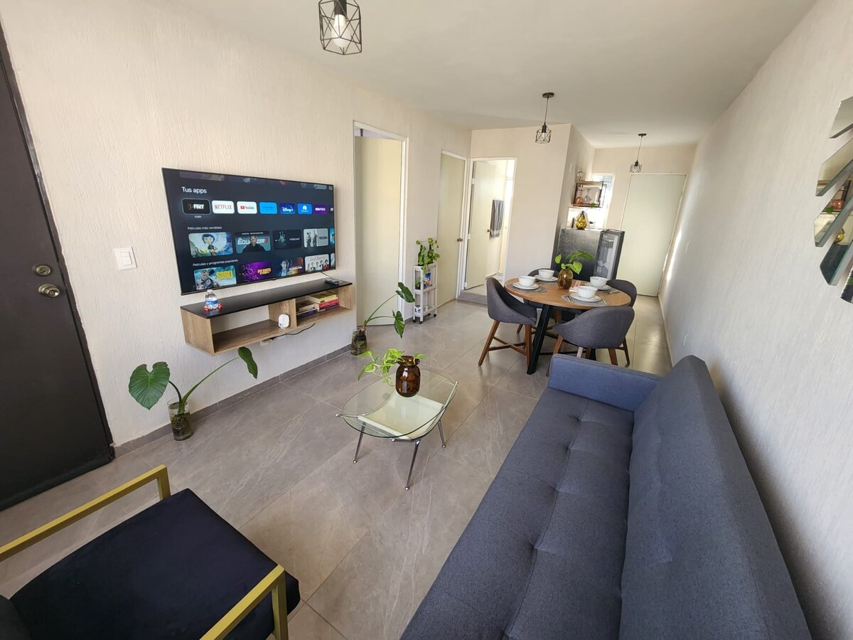 Profitez de Depa FM est un hébergement de luxe dans une réserve privée avec double filtre de sécurité, à seulement 5 min de l'aéroport. Idéal pour les courts séjours d'affaires en raison de sa proximité avec les bâtiments industriels, ou pour ceux qui recherchent confort et tranquillité. Équipé avec tout le nécessaire pour un séjour confortable et sûr. Excellente connectivité : à 20 min de Chapala, Tlaquepaque, Tonalá et du centre de Guadalajara, hébergement calme et central. Séjour prolongé nettoyages gratuits chaque semaine ✔️