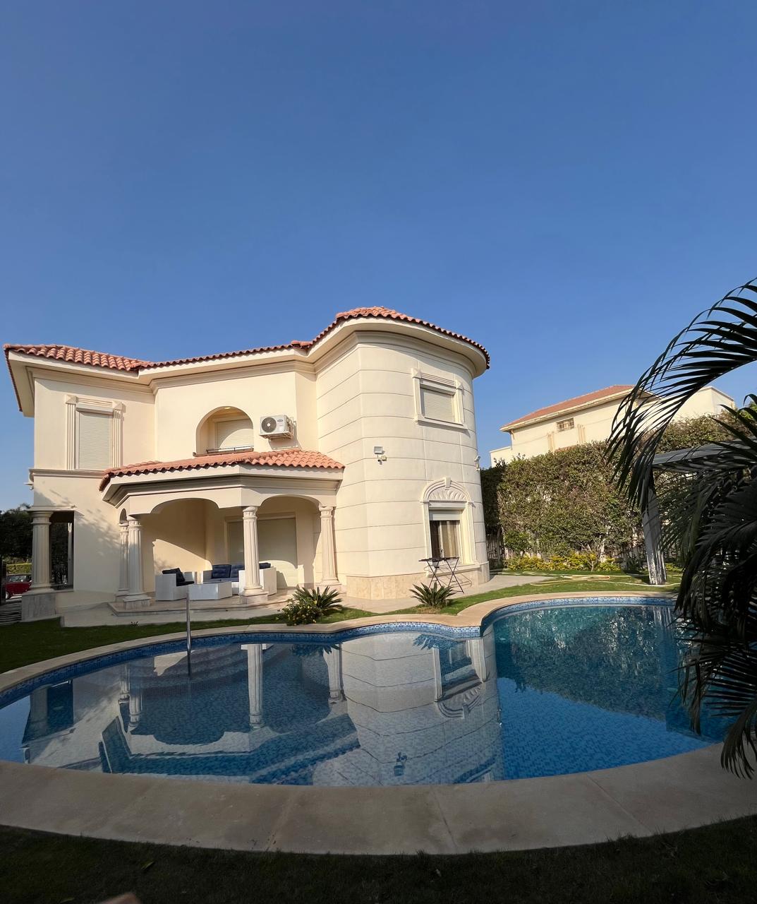 Le logement de la villa dispose de la climatisation et d'un balcon. Cette villa dispose d'une piscine privée, d'un jardin, d'un barbecue, d'une connexion Wi-Fi gratuite et d'un parking privé gratuit. Il y a (6) chambres dans la villa, un salon, une télévision par satellite à écran plat, une cuisine équipée, et (7) salles de bain avec bidet et douche, ainsi qu'une terrasse et une vue sur la ville. Des serviettes de lit et des draps sont à disposition dans la villa. Les voyageurs pourront profiter de la piscine couverte. Le logement de la villa est à 23 km des pyramides de Gizeh. L'aéroport international du Sphinx est à 25 km de la propriété.