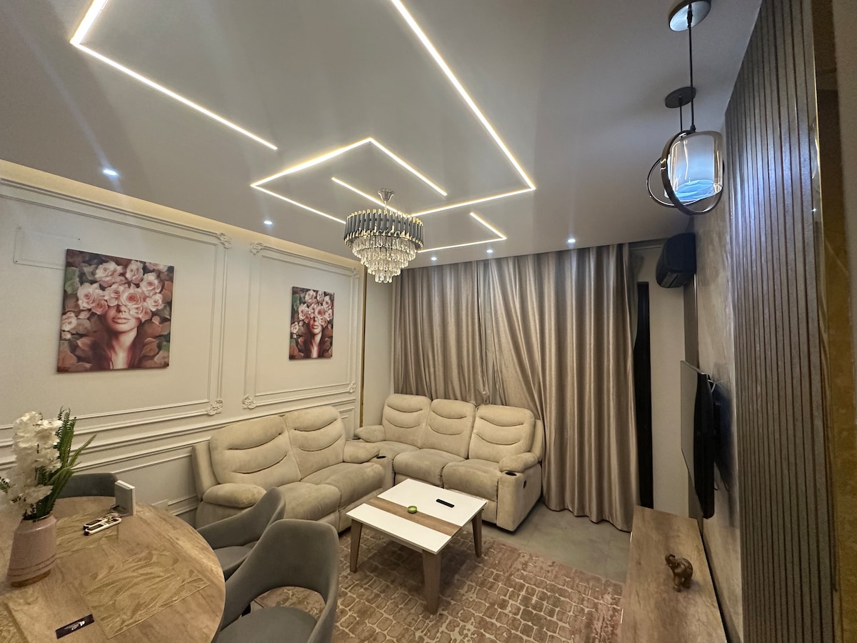 Détendez-vous en famille dans ce logement tranquille. Bienvenue dans votre retraite Privado à Madinaty. Évadez-vous dans cet appartement élégant et serein de 2 chambres situé au cœur de Privado, Madinaty – une communauté fermée haut de gamme connue pour sa sécurité, sa tranquillité et son cadre magnifique.