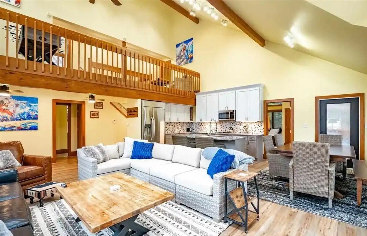 Snowshoe Chalet est votre escapade en montagne pour chaque saison. Confortable et privé avec de superbes vues, un WiFi rapide et de la place pour tout le monde. 5 chambres, 4 salles de bain complètes, salle de jeux dédiée avec jeu de palets, Pacman et baby-foot. Trois terrasses pour le café du matin ou les boissons du soir. Faites du ski, de la planche à neige (si vous le devez), de la randonnée, du kayak, du tube ou simplement observez les étoiles près du feu. Grande cuisine, gril, linge de maison et serviettes inclus. Détendez-vous, explorez, renouez avec les autres et créez des souvenirs inoubliables.
