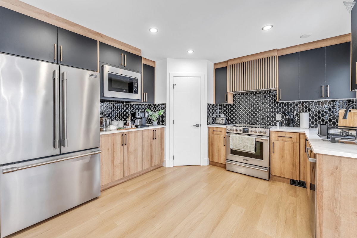 Ce logement privé au sous-sol offre un mélange parfait de vie moderne, d'espace et de confort, avec une ambiance de rez-de-chaussée. Il présente une atmosphère accueillante, parfaite pour divertir les voyageurs ou simplement se détendre après une longue journée. La cuisine du chef dispose d'appareils électroménagers élégants en acier inoxydable, ce qui fait de la cuisine un plaisir. La chambre est une retraite confortable avec un lit king size et de nombreux oreillers pour votre confort. Cet emplacement offre un accès facile et rapide à l'aéroport international, aux commodités locales, aux parcs et plus encore.
