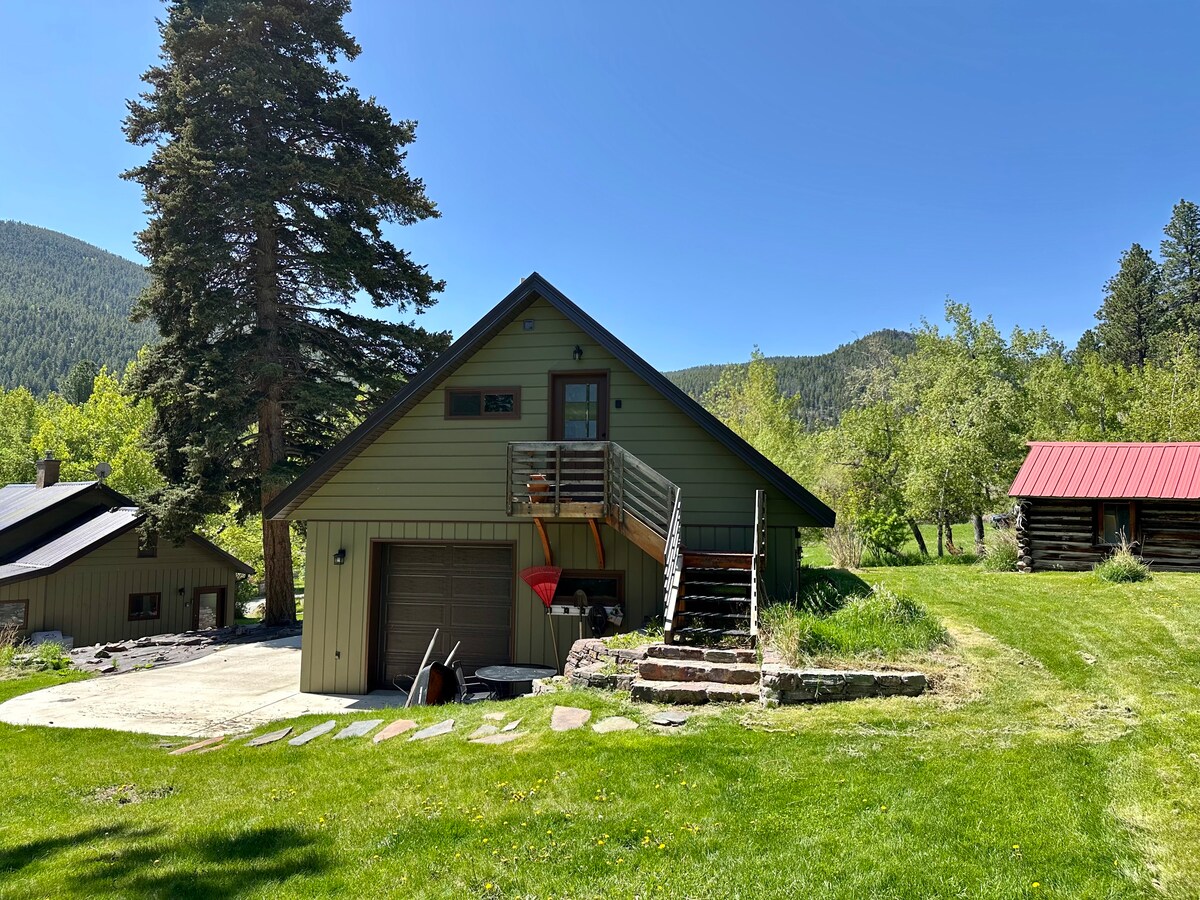 2 nuits minimum. Animaux acceptés avec approbation. Tous les chiens doivent être tenus en laisse et surveillés autour du pavillon et des chalets. La propriété est un ranch de 65 acres entouré de tous les côtés par la forêt nationale Helena. Il y a une route forestière de 3 miles qui grimpe à plus de 1 000 pieds jusqu'à la propriété du ranch. Les voyageurs apprécient la solitude, les vues, la faune... Il est recommandé d'arriver avant la tombée de la nuit. AUCUNE CHASSE SUR OU À PARTIR DU RANCH