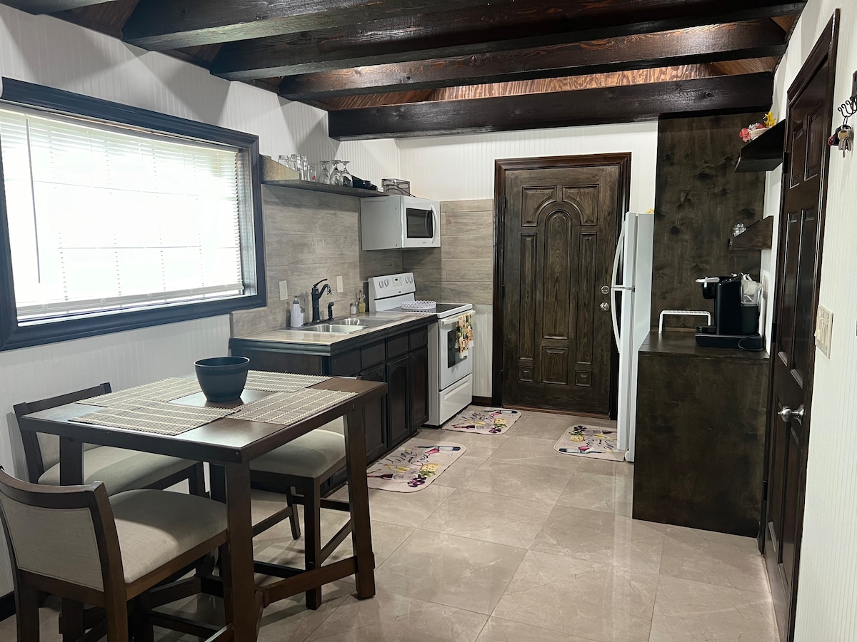 Découvrez la commodité du Wi-Fi haut débit dans ce charmant studio qui vous donne l'impression d'être chez vous loin de chez vous. Voici ce que nous avons en réserve pour vous : - Une salle de bain bien aménagée avec une douche complète. - Un coin chambre confortable avec un lit Queen Size. - Une cuisine entièrement équipée et une table à manger accueillante. - Un espace salon confortable. - Accès complet à une télévision pour votre divertissement. Votre propre patio privé, avec barbecue et mobilier d'extérieur, pour votre plaisir exclusif.
