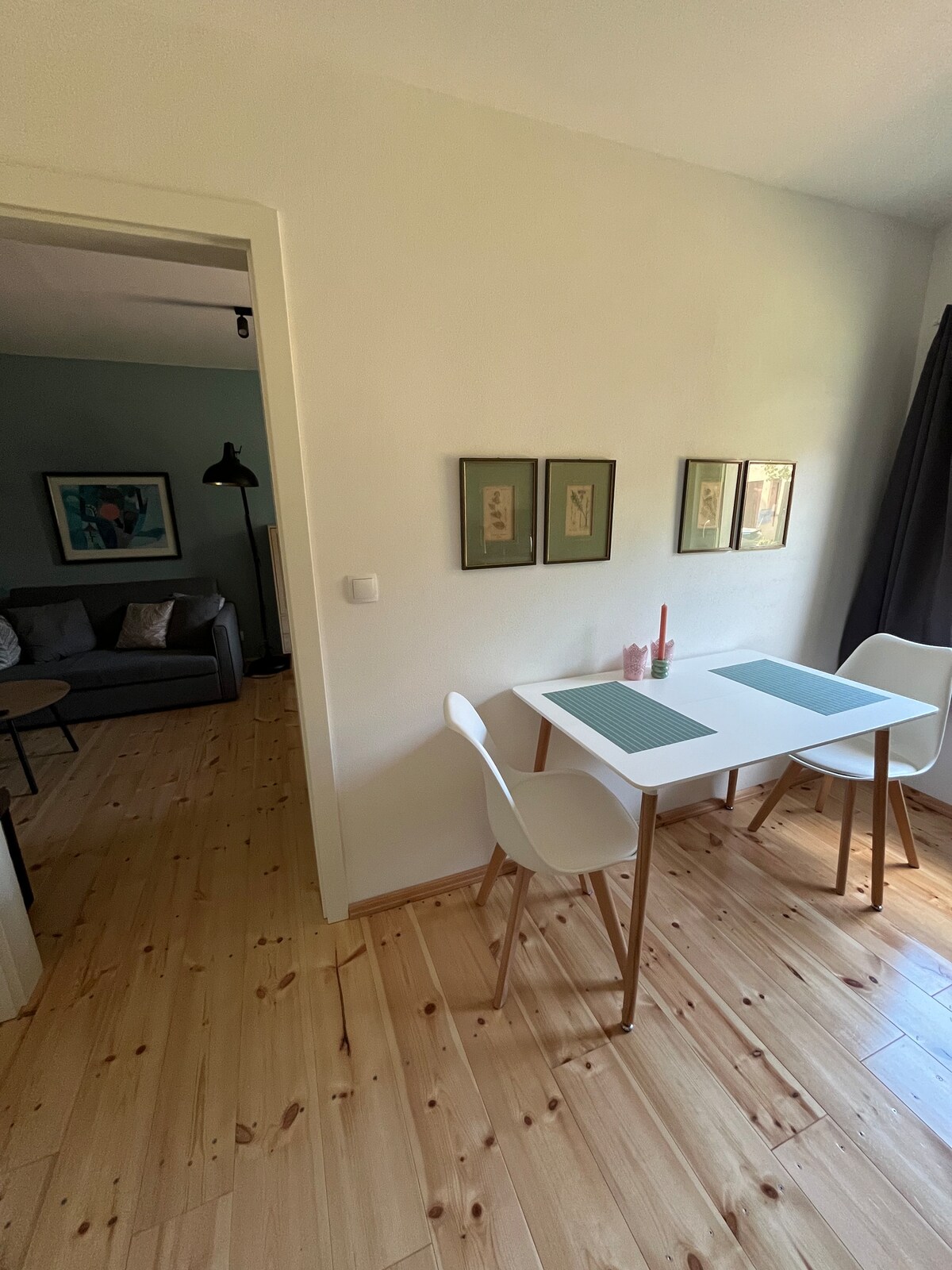 Appartement moderne pour navetteurs au cœur de Großenhain. Jusqu'à deux personnes peuvent être logées dans le lit superposé, la salle de bain avec baignoire à douche offre beaucoup d'espace. Un réfrigérateur ainsi qu'un micro-ondes, une bouilloire et une machine à café Senseo sont à votre disposition. En outre, un équipement de base de vaisselle. Les draps et les serviettes sont inclus dans le prix de la nuitée. N'hésitez pas à nous demander des séjours plus longs. Cordialement Franzi de Fäncy Home