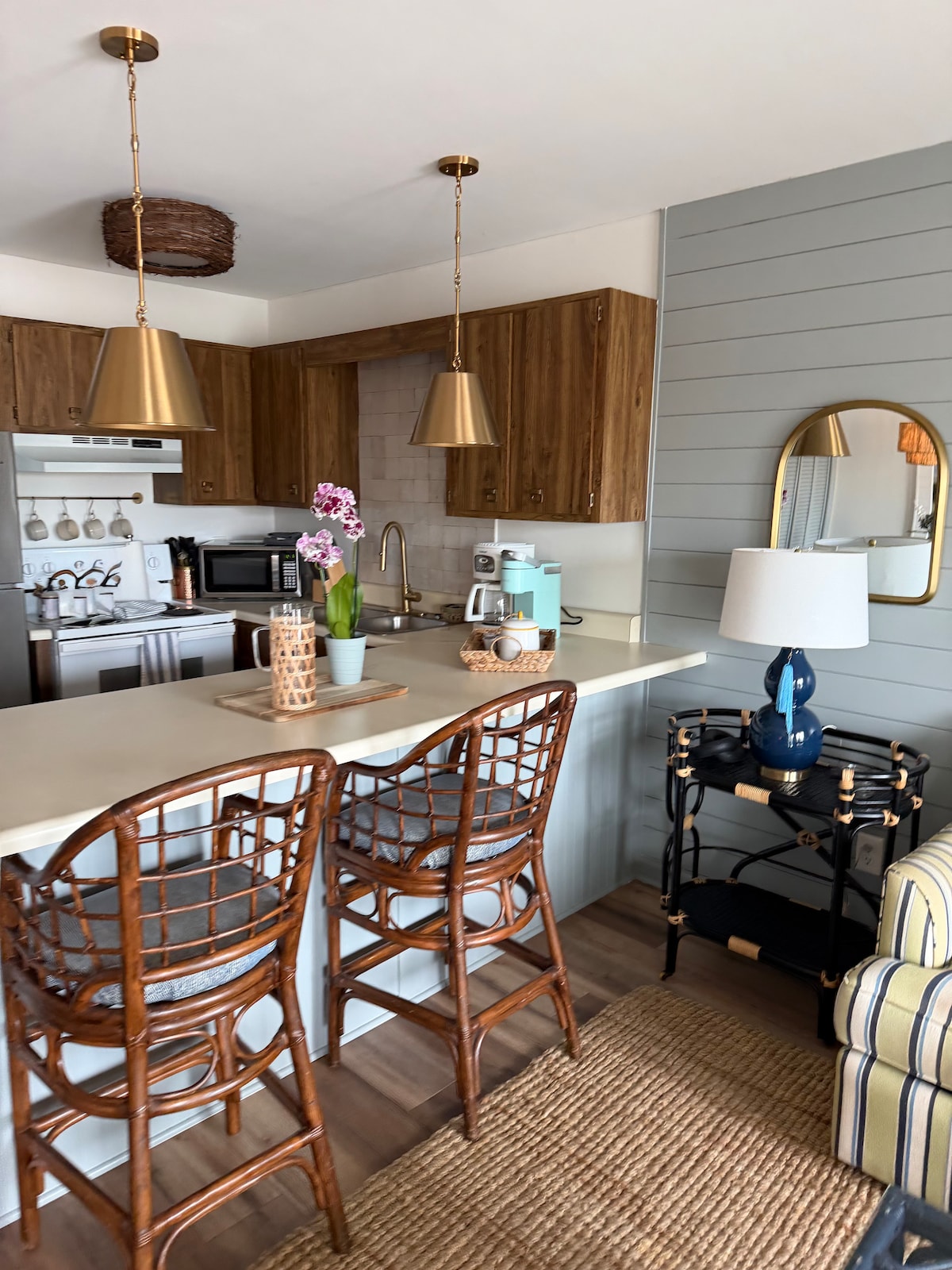 Condo avec chambre king - À distance de marche de la plage !! Draps et serviettes inclus. Concept ouvert avec beaucoup de lumière naturelle. De nombreuses améliorations au cours des dernières années, mais les changements les plus récents incluent un shiplap, ce qui donne à la pièce une sensation de couches et de confort, de nouveaux lustres en laiton et un dosseret zellige. 1 chambre avec un lit King Size et un canapé convertible Queen Size dans le séjour. Complexe fermé en bord de mer avec 2 piscines extérieures et une piscine intérieure chauffée, des courts de tennis, des grils et une salle de sport !