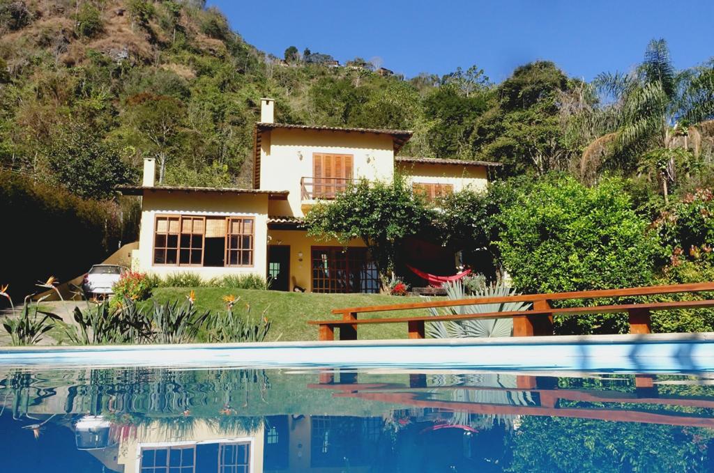 Grande maison de deux étages, claire et super confortable, située à 120 km de Rio de Janeiro. En bas, il y a une cuisine avec garde-manger, une suite d'une chambre avec placards intégrés, 1 toilette et 1 salle de bain extérieure. Grande salle à manger, salon de 70 mètres et cheminée, deux environnements. Buanderie avec petite chambre. Partie supérieure avec 2 chambres avec balcon, salle de bain. Espace extérieur avec piscine 5x8 et barbecue. Stationnement pour 3 voitures. 7 km parc dino.