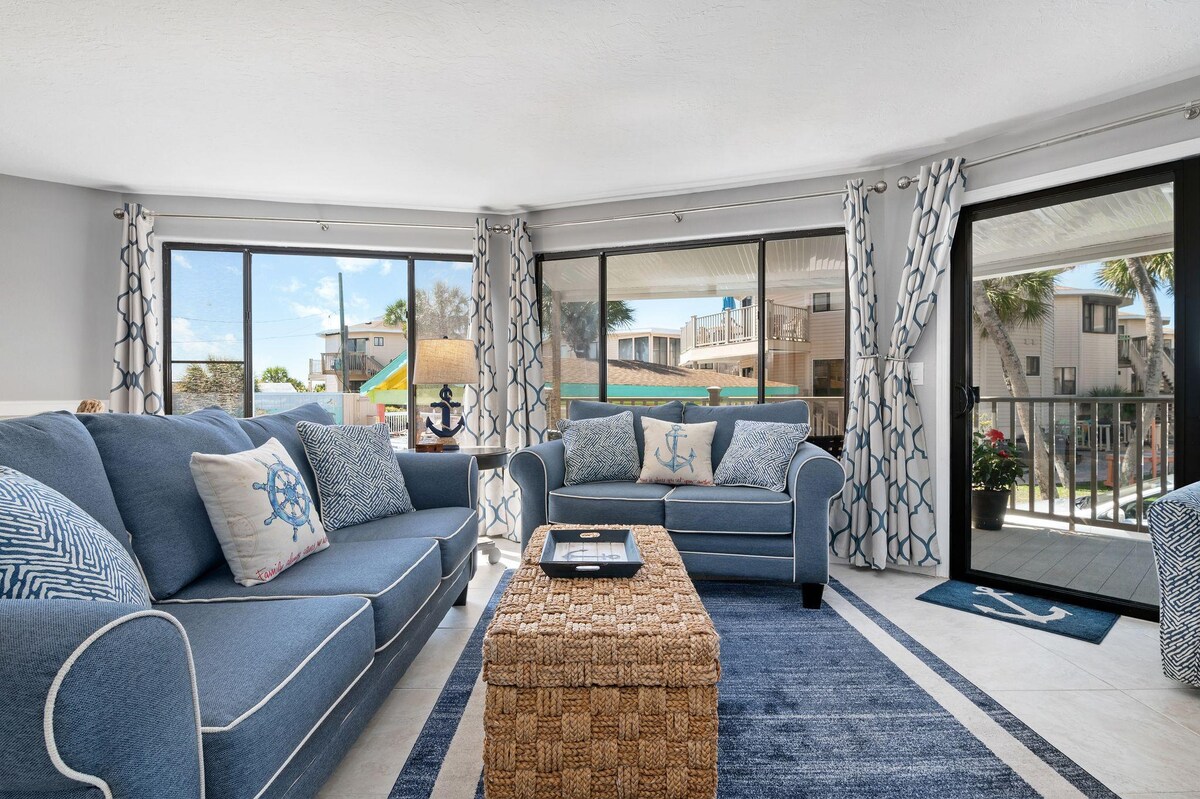 Ce condo de 2 chambres/2 salles de bain est juste au bord de l'eau à Siesta Key! C'est l'appartement supérieur d'un complexe de deux étages qui offre une vue parfaite et ressemble à votre propre escapade personnelle ! Il est livré avec une cuisine complète, un salon avec un canapé-lit et deux terrasses. Une partie de ce qui le rend incroyable, c'est le quai privé sur le col. Parfait pour faire du kayak et explorer ! Ou peut-être que vous aimeriez simplement vous détendre et faire un plongeon dans la piscine chauffée ? Situé au calme, vous pourrez profiter du calme, ou vous rendre au village de Siesta !