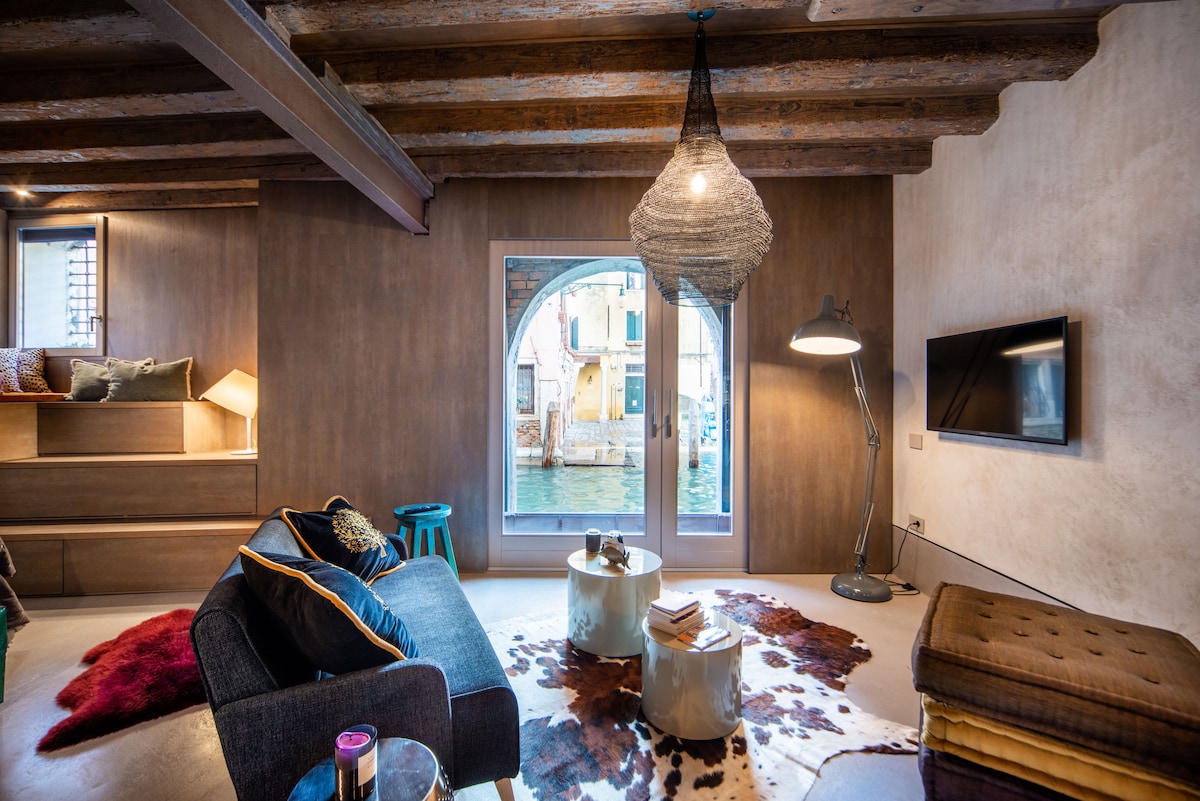 Élégant et moderne appartement dans le centre historique de Venise, dans le Sestiere San Polo, à deux pas de la Basilique des Frari, l’un des quartiers les plus caractéristiques de Venise, riche en « bacari » et petits restaurants. Donnant directement sur un canal important qui permet l’arrivée des clients directement en taxi. Excellente occasion de vivre une Venise traditionnelle comme de vrais Vénitiens.