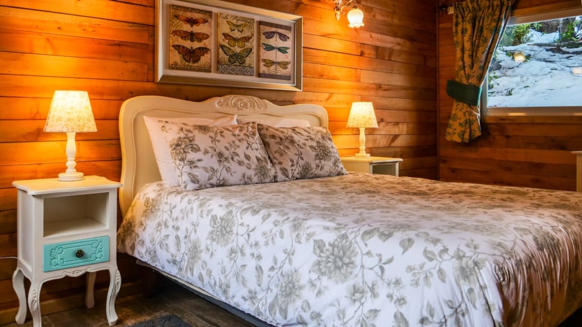 Cabane pour 2 personnes, comprend des vélos de randonnée VTT et une option de cuve chaude privée (40 000 $ supplémentaires). Il a une vue spectaculaire sur le volcan Llaima et l'endroit est entouré d'une forêt précordillérienne. Le parc national Conguillio est situé à 8 km. Par le lieu passe la rivière Captren et se trouvent Les sentiers de la Lagune Noire, des géosites qui font partie du géoparc KutralKura. Également à proximité se trouve le centre de ski, les réserves naturelles, les pistes cyclables, les thermes et les chutes d'eau.