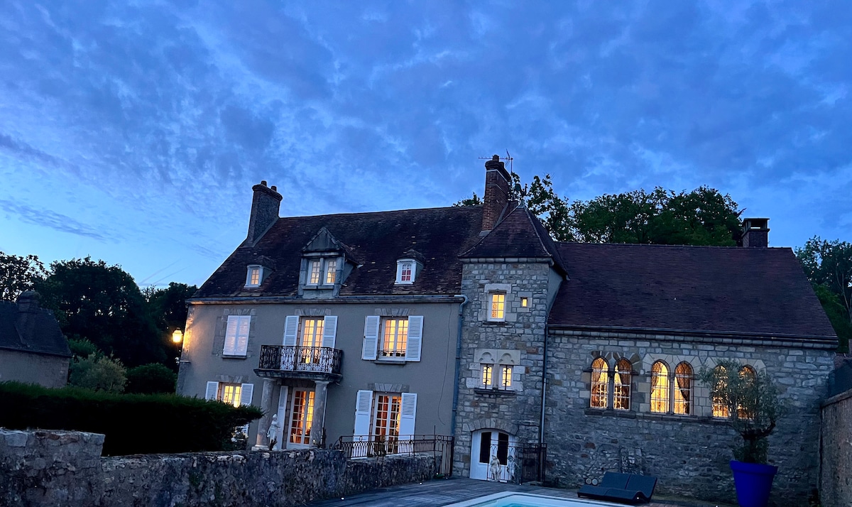 Bienvenue dans le charmant Manoir de Bouron, un magnifique domaine du XVIIe siècle situé à seulement une heure de Notre-Dame de Paris à Moigny-sur-École. Les voyageurs séjournent aux étages supérieurs avec 4 chambres, une réception et une salle à manger avec une vaste bibliothèque et deux salles de bain, l'une d'elles étant une salle d'eau de style marocain. Explorez le parc de 7 333 m² avec des jardins français tranquilles, des arbres séculaires et un étang à carpes koï serein. Je réside au rez-de-chaussée, je m'assure que votre séjour est confortable.