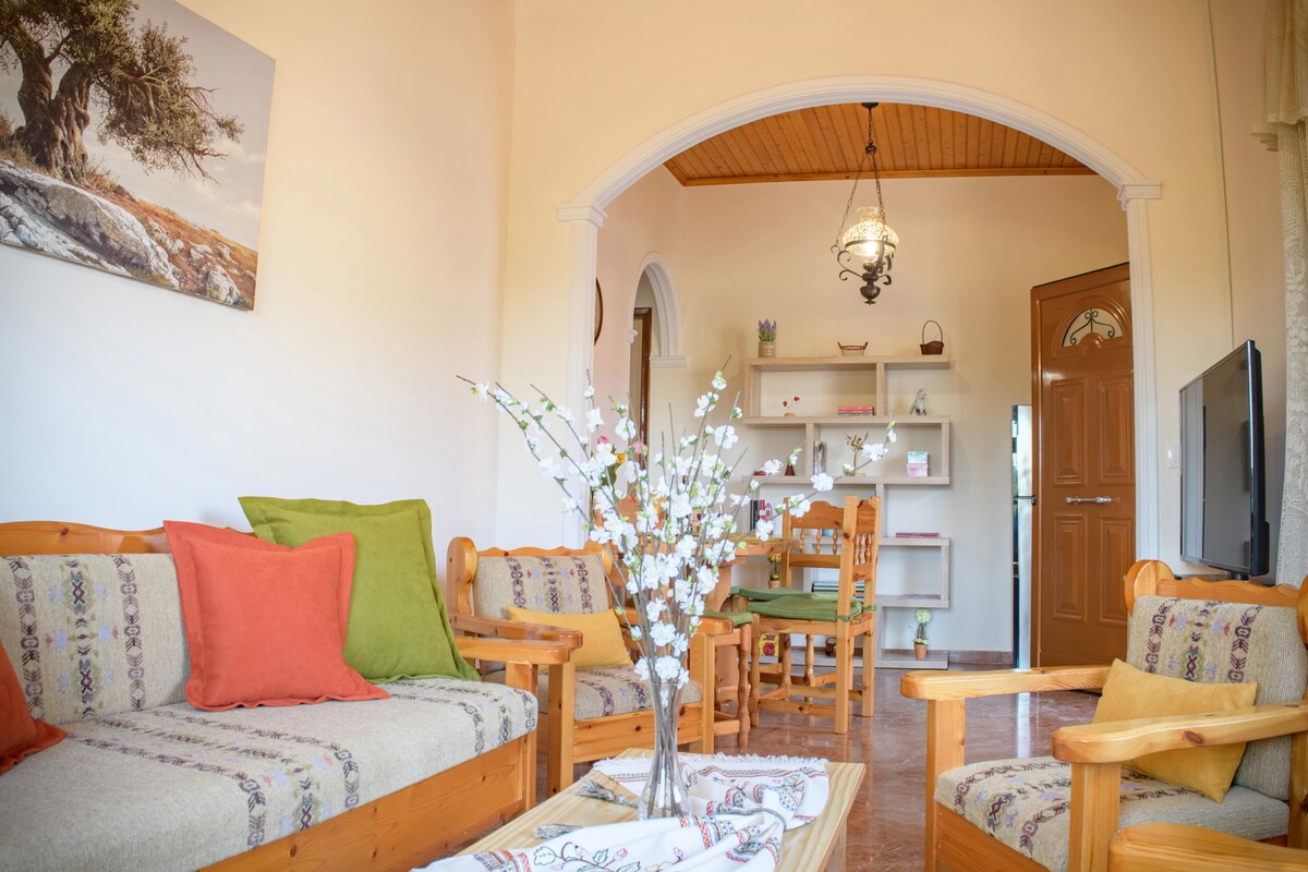 La ferme est située sur une ferme de 7 acres dans le village de Souleika, à 6 km de la ville de Corfou, et comprend un appartement mansardé séparé au deuxième étage de 74 m². Espace idéal pour une famille ou des couples de 4 ou 5 personnes. Cet espace bien équipé assure un séjour inoubliable. À 900 mètres, il y a des cafés, des cabinets médicaux, des pharmacies,des supermarchés. Très proche des belles plages de Glyfada, Kontogialos et Ai Gordis, ainsi que du palais de la princesse Sissy Achillion.