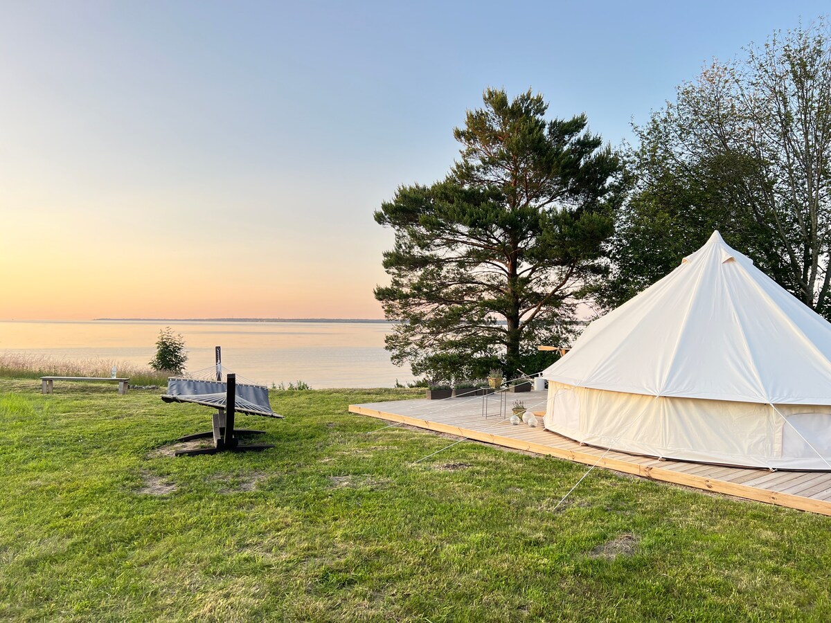 Le Sääremaa Glamping est situé près du phare de Sõrve, l'une des plus grandes icônes de Saaremaa. Il dispose d'une tente de type cloche agréable et confortable, d'une cuisine extérieure, de toilettes sèches et d'une douche. À l'intérieur de la tente, nous avons 2 lits (80x200) qui peuvent être connectés comme un lit 180x200. Également 2 chaises confortables et 1 table. Pour le chauffage, nous avons un joli foyer en fonte et un ventilateur de chauffage électrique. Dans la cuisine extérieure, nous avons un petit réfrigérateur, une cuisinière et tout l'équipement dont vous aurez besoin pour préparer un bon repas.