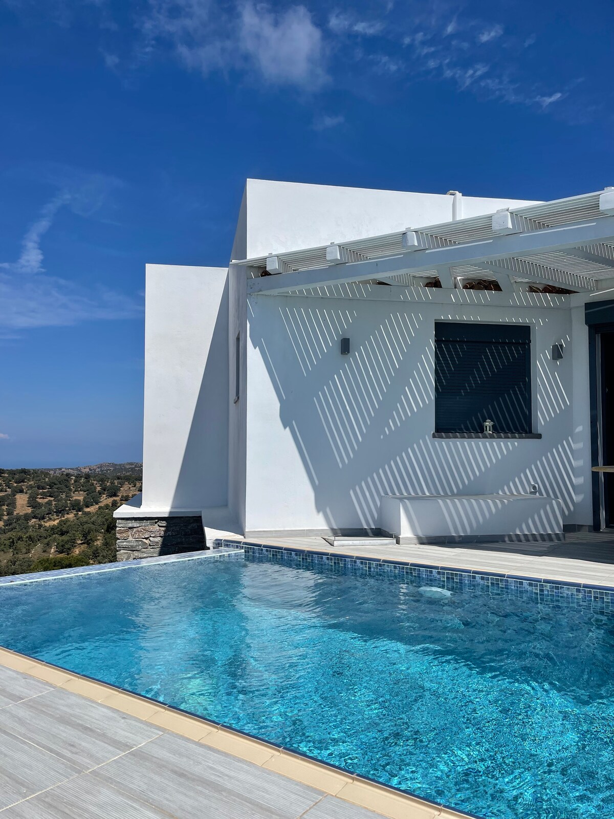 L'appartement a été soigneusement conçu et construit pour vous donner l'impression de séjourner dans votre propre maison de luxe sur une île grecque. Matériaux naturels, tons terreux, simplicité et élégance. Situé dans le village d'Ellinika, à seulement 15' d'Ioulida et de la plage de Koundouros. Profitez de moments de détente dans notre paradis loin de la foule. Confortable et confortable, conçu dans le style cycladique traditionnel avec une vue imprenable. Cet appartement a accès à la piscine qui est partagée
