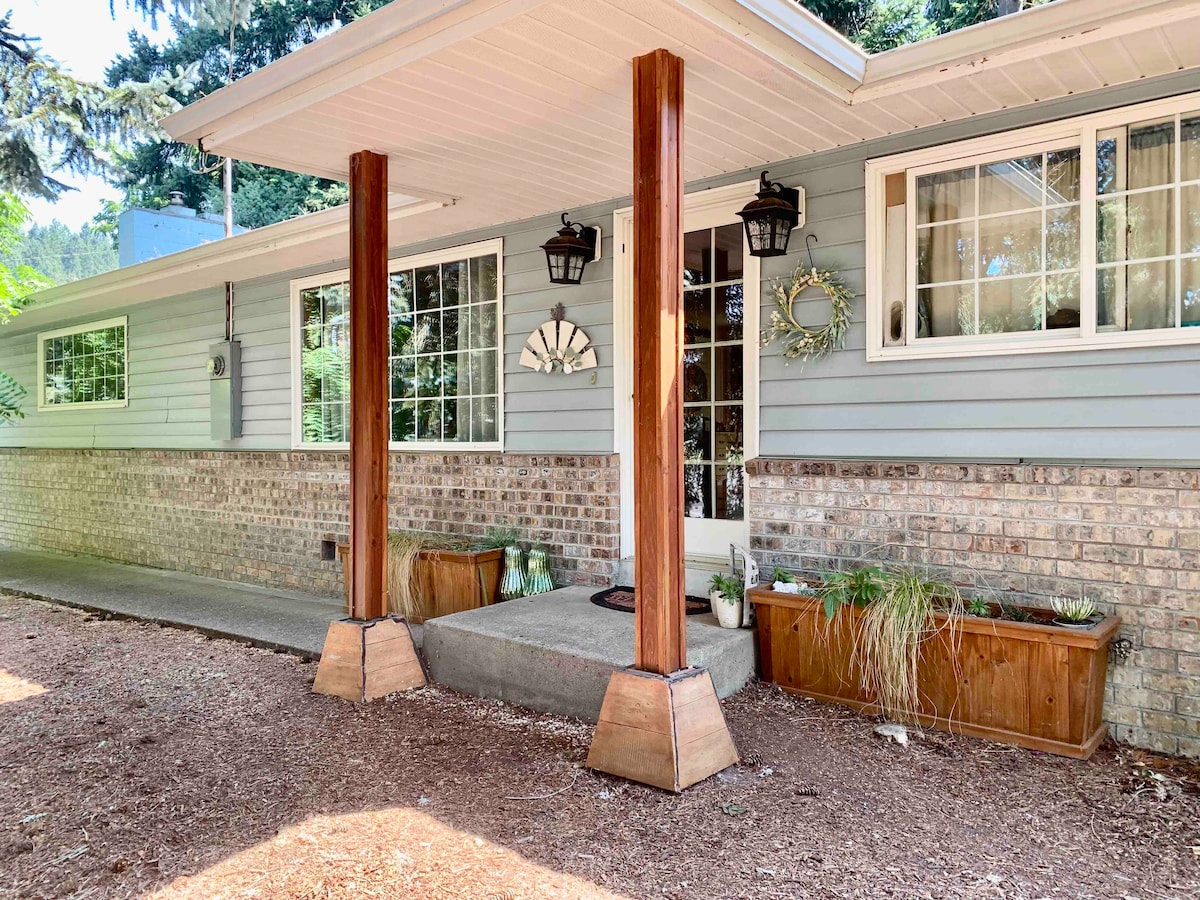 Belle petite maison avec toutes les commodités. Cuisine avec lave-vaisselle, cuisinière, réfrigérateur, micro-ondes et plus encore. Salle de bain avec baignoire. Lit Queen Size dans le loft accessible par les escaliers. Espace extérieur à l'avant et à l'arrière. L'espace extérieur arrière est entièrement couvert de la pluie et c'est un bel endroit. Un endroit idéal pour deux personnes en ville pour le travail ou pour explorer notre merveilleux PNW. À une heure de la côte et des Cascades, au cœur de la région viticole de la vallée de la Willamette.