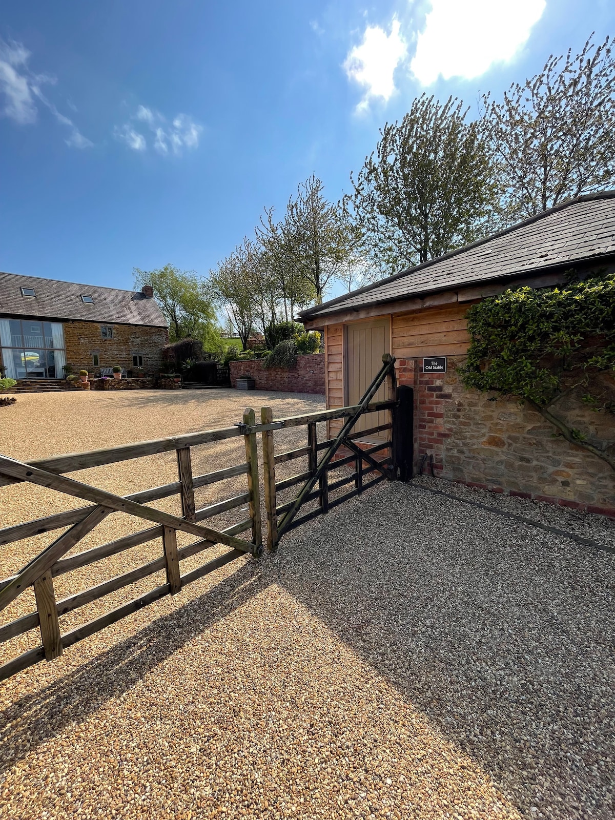 Profitez du cadre charmant de ce lieu romantique situé sur une ferme en activité à la frontière de l'Oxfordshire et du Northamptonshire, avec des vues rurales et de belles promenades autour de la ferme. Nous avons des chevaux, du bétail, des poulets et 450 acres à apprécier. De nombreux sites fantastiques à proximité, y compris le palais de Blenheim, la ferme de Soho, le château de Warwick, Silverstone, Upton House, Diddly Squat (30 minutes). Réveillez-vous avec de magnifiques levers de soleil, une faune incroyable et une vue imprenable. Vous pouvez même voir les 14 cerfs sauvages qui se promènent dans la ferme.